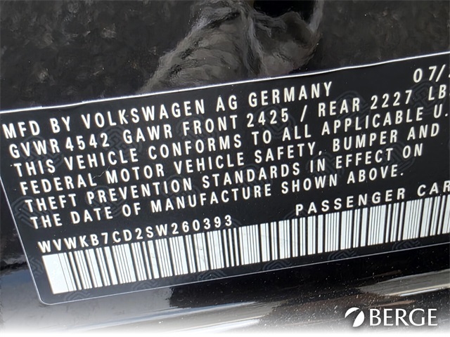 - VIN : WVWKB7CD2SW260393