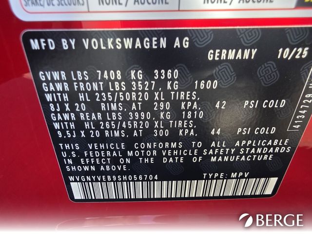 Serving The Valley For Over 40 Years! This Volkswagen ID. Buzz is equipped with the following features: 14 Speakers, 3rd row seats: split-bench, ABS brakes, Air Conditioning, Alloy wheels, Auto High-beam Headlights, Auto-dimming Rear-View mirror, Automatic temperature control, Brake assist, Bumpers: body-color, Delay-off headlights, Driver door bin, Driver vanity mirror, Driver's Seat Mounted Armrest, Dual front impact airbags, Dual front side impact airbags, Electronic Stability Control, Emergency communication system: VW Car-Net Safe & Secure 5-year, Exterior Parking Camera Rear, Four wheel independent suspension, Front anti-roll bar, Front Bucket Seats, Front dual zone A/C, Front fog lights, Front reading lights, Fully automatic headlights, harman/kardon Speakers, Heads-Up Display, Heated & Actively Ventilated Front Seats, Heated door mirrors, Heated front seats, Heated rear seats, Heated steering wheel, Illuminated entry, Leather steering wheel, Low tire pressure warning, Memory seat, Navigation System, Occupant sensing airbag, Outside temperature display, Overhead airbag, Panic alarm, Passenger door bin, Passenger seat mounted armrest, Passenger vanity mirror, Perforated V-Tex Leatherette Seating Surfaces, Power door mirrors, Power driver seat, Power Liftgate, Power passenger seat, Power steering, Power windows, Radio data system, Radio: Discover Pro Max w/Touchscreen Navigation, Rain sensing wipers, Rear air conditioning, Rear anti-roll bar, Rear reading lights, Rear window defroster, Rear window wiper, Remote keyless entry, Speed control, Speed-sensing steering, Split folding rear seat, Spoiler, Steering wheel mounted audio controls, TBD Axle Ratio, Telescoping steering wheel, Tilt steering wheel, Traction control, Trip computer, Turn signal indicator mirrors, Variably intermittent wipers, Ventilated front seats, and Wheels: 20" Two-Tone Disc Alloy.