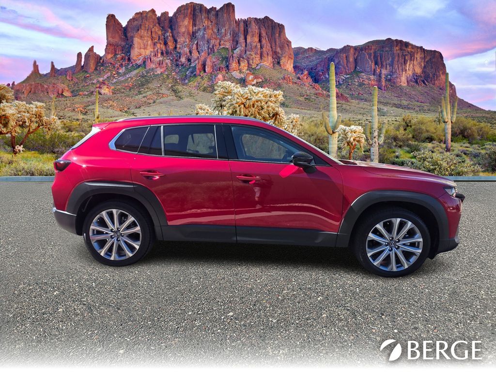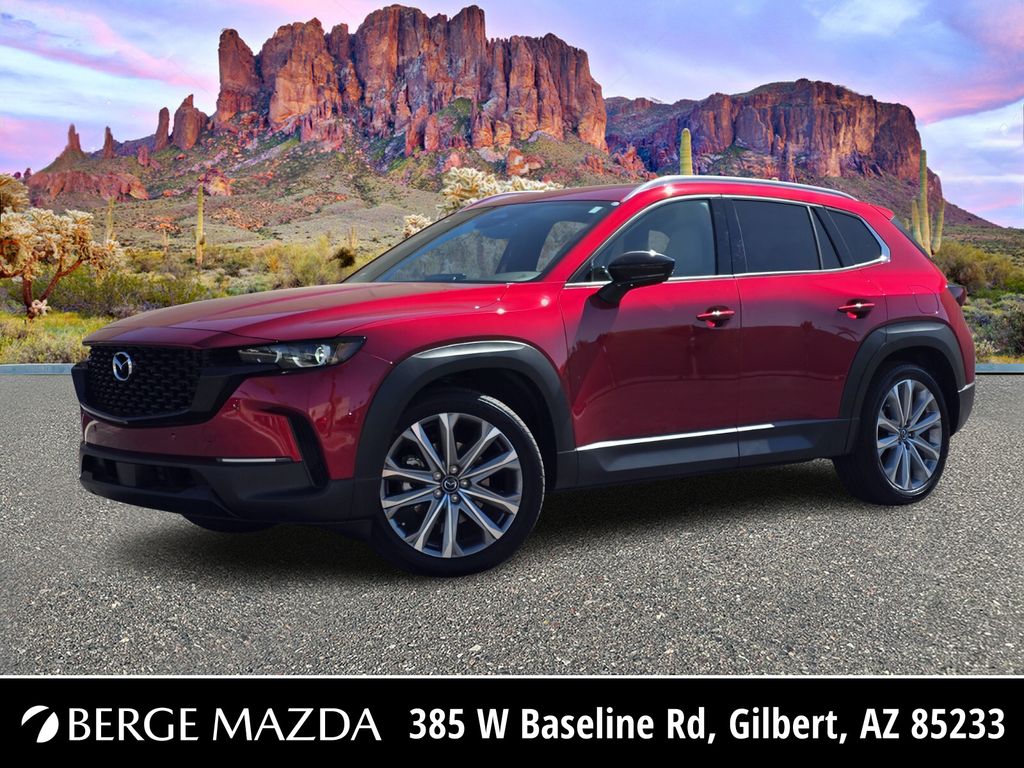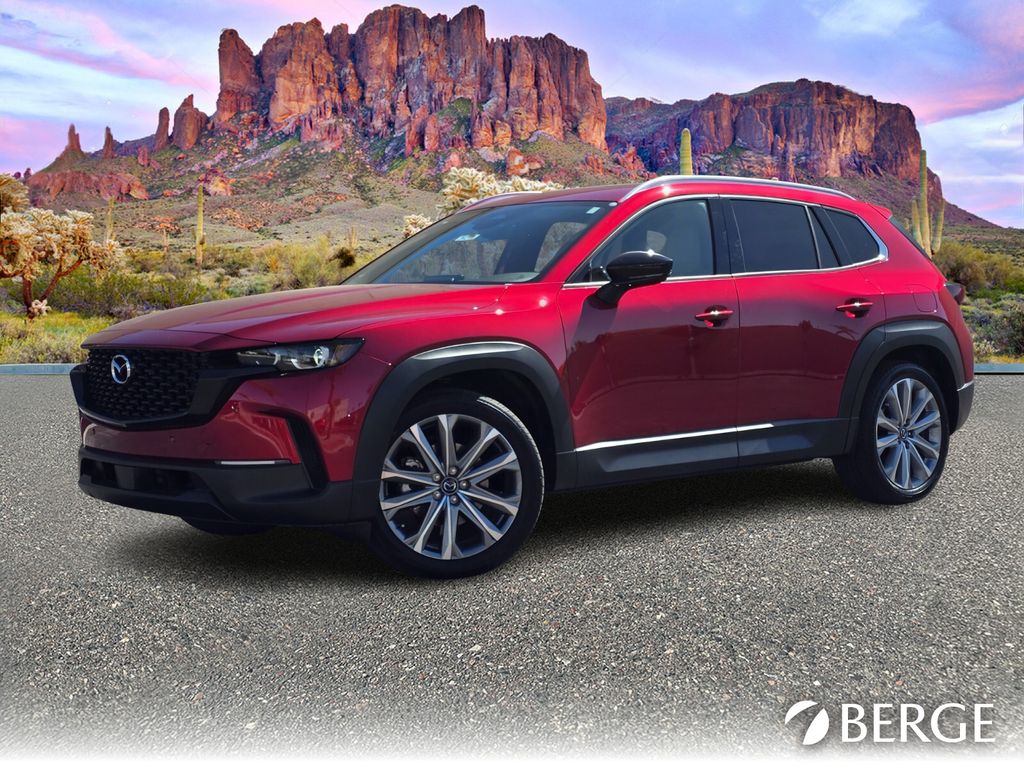 Serving The Valley For Over 40 Years! This Mazda CX-50 is equipped with the following features: Weather Package, 12 Speakers, 4-Wheel Disc Brakes, ABS brakes, Air Conditioning, Alloy wheels, AM/FM radio: SiriusXM, AppLink/Apple CarPlay and Android Auto, Auto High-beam Headlights, Auto-dimming Rear-View mirror, Automatic temperature control, Brake assist, Bumpers: body-color, Delay-off headlights, Driver door bin, Driver vanity mirror, Dual front impact airbags, Dual front side impact airbags, Electronic Stability Control, Emergency communication system: MAZDA CONNECT, Exterior Parking Camera Rear, Front anti-roll bar, Front Bucket Seats, Front Center Armrest, Front dual zone A/C, Front reading lights, Front wheel independent suspension, Fully automatic headlights, Heated and Ventilated Front Seats with 3 Level Adjustment, Heated door mirrors, Heated front seats, Illuminated entry, Knee airbag, Leather Seat Trim, Leather Shift Knob, Leather steering wheel, Low tire pressure warning, Memory seat, Occupant sensing airbag, Outside temperature display, Overhead airbag, Overhead console, Panic alarm, Passenger door bin, Passenger vanity mirror, Power door mirrors, Power driver seat, Power Liftgate, Power moonroof, Power passenger seat, Power steering, Power windows, Radio data system, Radio: AM/FM/HD Bose 12-Speaker Audio Sound System, Rain sensing wipers, Rear seat center armrest, Rear window defroster, Rear window wiper, Remote keyless entry, Speed control, Speed-sensing steering, Split folding rear seat, Spoiler, Steering wheel mounted audio controls, Tachometer, Telescoping steering wheel, Tilt steering wheel, Traction control, Trip computer, Turn signal indicator mirrors, Variably intermittent wipers, Ventilated front seats, and Wheels: 20" x 8J Aluminum Alloy Black Metallic with Machining Cut.