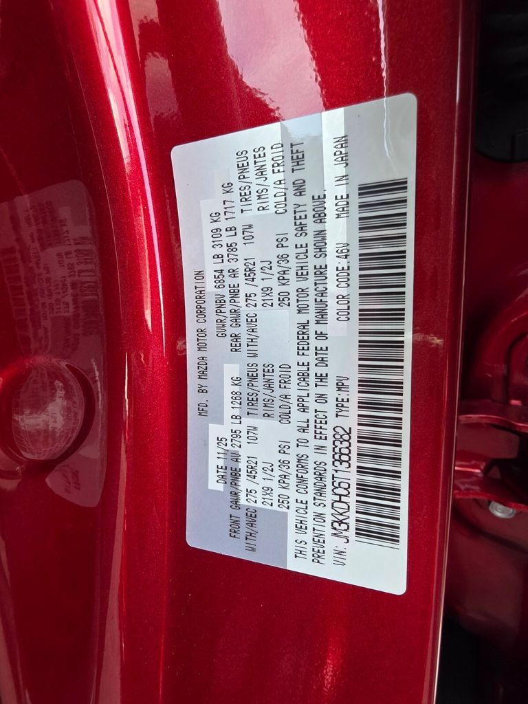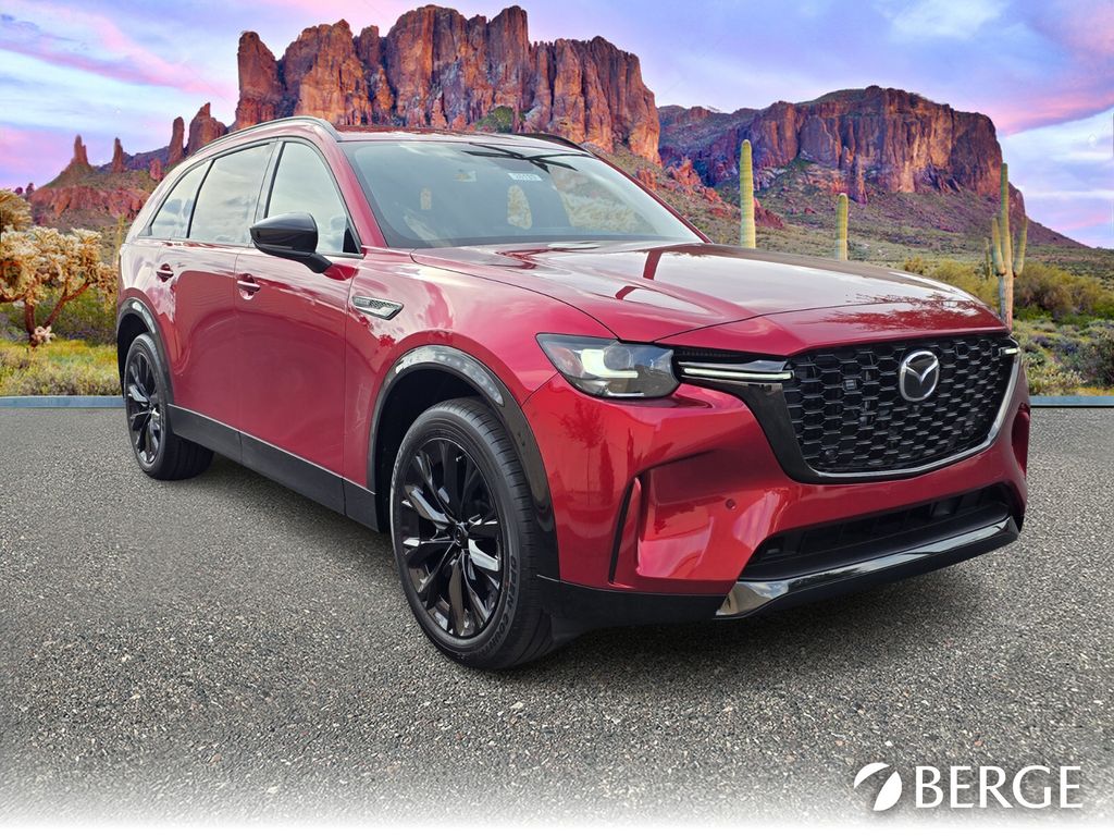 Serving The Valley For Over 40 Years! This Mazda CX-90 is equipped with the following features: 12 Speakers, 3rd row seats: bench, 4-Wheel Disc Brakes, ABS brakes, Air Conditioning, All Weather Floor Mats - Bench Seat, Alloy wheels, AM/FM radio: SiriusXM, Auto High-beam Headlights, Auto-dimming door mirrors, Auto-dimming Rear-View mirror, Automatic temperature control, Black Liftgate Garnish, Brake assist, Bumpers: body-color, Compass, Delay-off headlights, Driver door bin, Driver vanity mirror, Dual front impact airbags, Dual front side impact airbags, E911 Automatic Emergency Notification, Electronic Stability Control, Emergency communication system: MAZDA CONNECT, Four wheel independent suspension, Front anti-roll bar, Front Bucket Seats, Front Center Armrest w/Storage, Front dual zone A/C, Front reading lights, Fully automatic headlights, Garage door transmitter: HomeLink, Heads-Up Display, Heated door mirrors, Heated front seats, Heated rear seats, Heated steering wheel, Heated/Ventilated Front Bucket Seats, Illuminated entry, Infotainment System Voice Command, Knee airbag, Leather Shift Knob, Leather steering wheel, Low tire pressure warning, Mazda Connected Services, Mazda Online Navigation, Memory seat, Nappa Leather Seat Trim, Navigation system: MAZDA CONNECT, Occupant sensing airbag, Outside temperature display, Overhead airbag, Overhead console, Panic alarm, Passenger door bin, Passenger vanity mirror, Power door mirrors, Power driver seat, Power Liftgate, Power moonroof, Power passenger seat, Power steering, Power windows, Radio Broadcast Data System Program Information, Radio data system, Radio: : AM/FM w/HD/Bose 12-Speaker Sound System, Rain sensing wipers, Rear air conditioning, Rear anti-roll bar, Rear reading lights, Rear seat center armrest, Rear window defroster, Rear window wiper, Remote keyless entry, Security system, SMS Text Msg Audio Delivery and Reply, Soul Red Crystal Metallic Paint Charge, Speed control, Speed-sensing steering, Split folding rear seat, Spoiler, Steering wheel memory, Steering wheel mounted audio controls, Tachometer, Telescoping steering wheel, Tilt steering wheel, Traction control, Trip computer, Turn signal indicator mirrors, Variably intermittent wipers, Ventilated front seats, and Wheels: 21" x 9.5J Aluminum Alloy with Black Metal Finish.