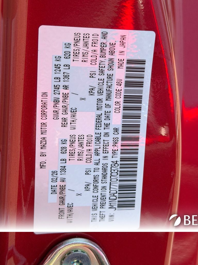 Serving The Valley For Over 40 Years! This Mazda MX-5 Miata is equipped with the following features: Weather Package (All Weather Floor Mats with MX-5 Badge and Cargo Tray with MX-5 Logo), 4-Wheel Disc Brakes, 9 Speakers, ABS brakes, Air Conditioning, Alloy wheels, AM/FM radio: SiriusXM, AppLink/Apple CarPlay and Android Auto, Auto High-beam Headlights, Auto-dimming door mirrors, Auto-dimming Rear-View mirror, Automatic temperature control, Brake assist, Bumpers: body-color, Cargo Net, Convertible roof lining, Convertible roof wind blocker, Delay-off headlights, Driver vanity mirror, Dual front impact airbags, Dual front side impact airbags, Electronic Stability Control, Emergency communication system: MAZDA CONNECT, Exterior Parking Camera Rear, Four wheel independent suspension, Front anti-roll bar, Front Bucket Seats, Front Center Armrest, Fully automatic headlights, Garage door transmitter: HomeLink, Glass rear window, Heated door mirrors, Heated Front Bucket Seats, Heated front seats, Illuminated entry, Leather Shift Knob, Leather Upholstery, Low tire pressure warning, MAZDA CONNECT Infotainment System, Navigation System, Occupant sensing airbag, Outside temperature display, Panic alarm, Passenger vanity mirror, Power door mirrors, Power steering, Power windows, Radio data system, Radio: Bose Audio System with Audiopilot, Rain sensing wipers, Rear anti-roll bar, Rear window defroster, Remote keyless entry, Speed control, Speed-sensing steering, Sport steering wheel, Steering wheel mounted audio controls, Tachometer, Telescoping steering wheel, Tilt steering wheel, Traction control, Trip computer, Variably intermittent wipers, Wheel Locks, and Wheels: 17" x 7" Aluminum Alloy with Black Metallic Finish.