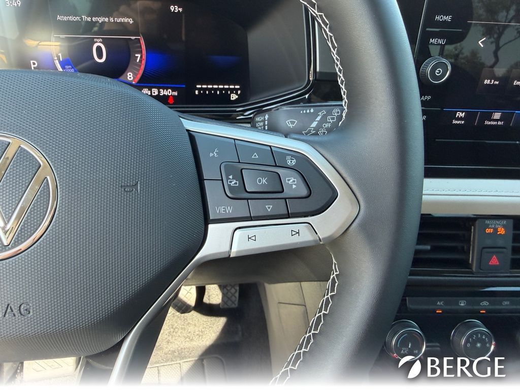 Serving The Valley For Over 40 Years! This Volkswagen Taos is equipped with the following features: 4-Wheel Disc Brakes, 6 Speakers, ABS brakes, Active Blind Spot Monitor, Air Conditioning, Alloy wheels, AM/FM radio, Auto High-beam Headlights, Brake assist, Bumpers: body-color, Cloth Seating Surfaces, Compass, Delay-off headlights, Driver door bin, Driver vanity mirror, Dual front impact airbags, Dual front side impact airbags, Electronic Stability Control, Emergency communication system: VW Car-Net Safe & Secure 5-year, Exterior Parking Camera Rear, Front anti-roll bar, Front Bucket Seats, Front Center Armrest, Front reading lights, Front Strut Rear Torsion Beam Suspension, Front wheel independent suspension, Fully automatic headlights, Heated steering wheel, Illuminated entry, Leather Shift Knob, Low tire pressure warning, Occupant sensing airbag, Outside temperature display, Overhead airbag, Overhead console, Panic alarm, Passenger door bin, Passenger vanity mirror, Power door mirrors, Power steering, Power windows, Radio data system, Radio: MIB3 Composition Color AM/FM, Rain sensing wipers, Rear anti-roll bar, Rear seat center armrest, Rear window defroster, Rear window wiper, Remote keyless entry, Speed control, Speed-sensing steering, Split folding rear seat, Spoiler, Steering wheel mounted audio controls, Tachometer, Telescoping steering wheel, Tilt steering wheel, Traction control, Trip computer, Variably intermittent wipers, and Wheels: 17" Dark Silver Painted Alloy.