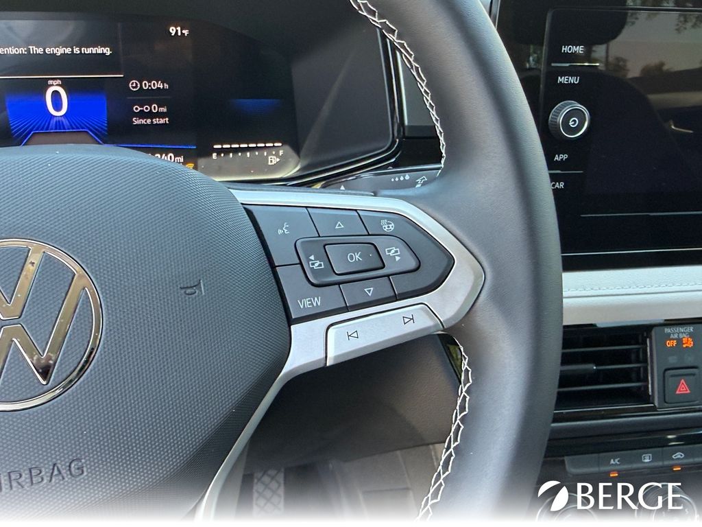 Serving The Valley For Over 40 Years! This Volkswagen Taos is equipped with the following features: 4-Wheel Disc Brakes, 6 Speakers, ABS brakes, Active Blind Spot Monitor, Air Conditioning, Alloy wheels, AM/FM radio, Auto High-beam Headlights, Brake assist, Bumpers: body-color, Cloth Seating Surfaces, Compass, Delay-off headlights, Driver door bin, Driver vanity mirror, Dual front impact airbags, Dual front side impact airbags, Electronic Stability Control, Emergency communication system: VW Car-Net Safe & Secure 5-year, Exterior Parking Camera Rear, Front anti-roll bar, Front Bucket Seats, Front Center Armrest, Front reading lights, Front Strut Rear Torsion Beam Suspension, Front wheel independent suspension, Fully automatic headlights, Heated steering wheel, Illuminated entry, Leather Shift Knob, Low tire pressure warning, Occupant sensing airbag, Outside temperature display, Overhead airbag, Overhead console, Panic alarm, Passenger door bin, Passenger vanity mirror, Power door mirrors, Power steering, Power windows, Radio data system, Radio: MIB3 Composition Color AM/FM, Rain sensing wipers, Rear anti-roll bar, Rear seat center armrest, Rear window defroster, Rear window wiper, Remote keyless entry, Speed control, Speed-sensing steering, Split folding rear seat, Spoiler, Steering wheel mounted audio controls, Tachometer, Telescoping steering wheel, Tilt steering wheel, Traction control, Trip computer, Variably intermittent wipers, and Wheels: 17" Dark Silver Painted Alloy.