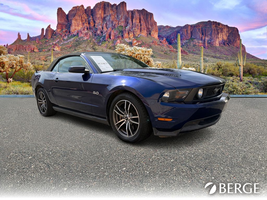 Serving The Valley For Over 40 Years! This Ford Mustang is equipped with the following features: Comfort Package (6-Way Power Passenger Seat and Heated Front Seats), Equipment Group 400A, Voice-Activated Navigation Package (Dual Zone Automatic Temperature Control and SIRIUS Satellite Radio), 5.0L V8 Ti-VCT 32V, 18" x 8" Wide Spoke Painted Aluminum Wheels, 4-Wheel Disc Brakes, 8 Speakers, ABS brakes, Air Conditioning, Alloy wheels, AM/FM radio, Auto-dimming Rear-View mirror, Brake assist, Bumpers: body-color, CD player, Convertible roof lining, Delay-off headlights, Driver door bin, Driver vanity mirror, Dual front impact airbags, Dual front side impact airbags, Electronic Stability Control, Front anti-roll bar, Front Bucket Seats, Front Center Armrest, Front fog lights, Front License Plate Bracket, Front reading lights, Front wheel independent suspension, Fully automatic headlights, Garage door transmitter, Glass rear window, Illuminated entry, Leather Bucket Seats, Low tire pressure warning, Occupant sensing airbag, Outside temperature display, Panic alarm, Passenger door bin, Passenger vanity mirror, Power convertible roof, Power door mirrors, Power driver seat, Power steering, Power windows, Premium audio system: Shaker 500, Radio data system, Radio: Shaker 500 AM/FM Stereo w/In-Dash CD/MP3, Rear anti-roll bar, Rear window defroster, Remote keyless entry, Speed control, Speed-sensing steering, Spoiler, Tachometer, Tilt steering wheel, Traction control, Trip computer, Variably intermittent wipers, and Voltmeter.