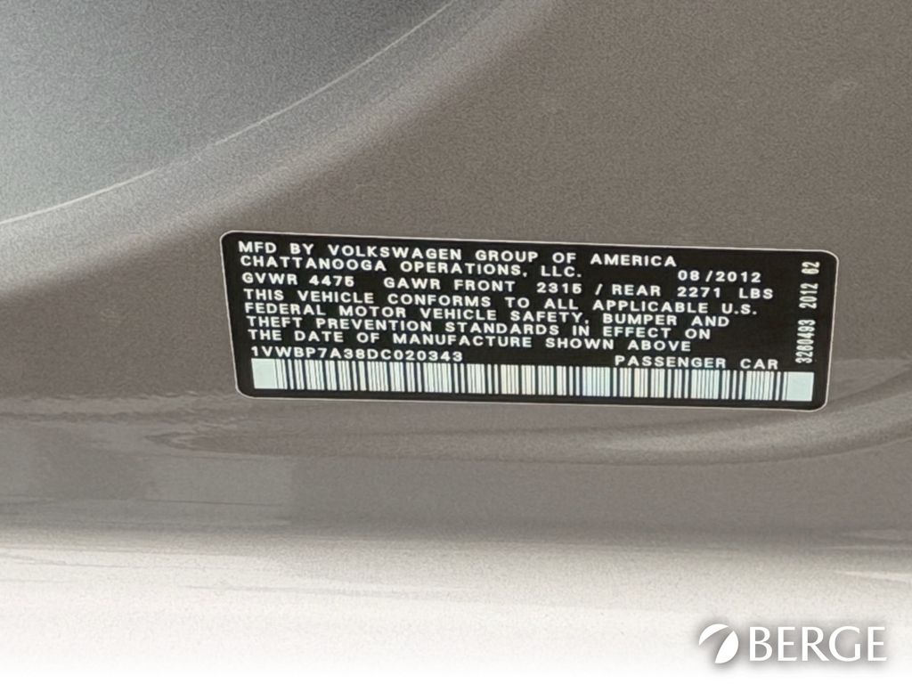 - VIN : 1VWBP7A38DC020343