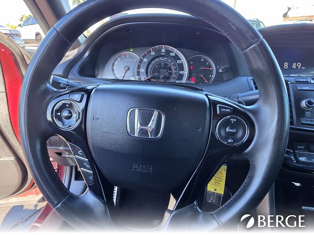 Serving The Valley For Over 40 Years! This Honda Accord is equipped with the following features: Black w/Cloth Seat Trim, 160-Watt AM/FM/CD Audio System, 19" Alloy Wheels, 4 Speakers, 4-Wheel Disc Brakes, ABS brakes, Air Conditioning, Alloy wheels, AM/FM radio, Automatic temperature control, Brake assist, Bumpers: body-color, CD player, Cloth Seat Trim, Delay-off headlights, Driver door bin, Driver vanity mirror, Dual front impact airbags, Dual front side impact airbags, Electronic Stability Control, Exterior Parking Camera Rear, Four wheel independent suspension, Front anti-roll bar, Front Bucket Seats, Front Center Armrest, Front dual zone A/C, Front fog lights, Front reading lights, Fully automatic headlights, Illuminated entry, Leather Shift Knob, Low tire pressure warning, Occupant sensing airbag, Outside temperature display, Overhead airbag, Overhead console, Panic alarm, Passenger door bin, Passenger vanity mirror, Power door mirrors, Power driver seat, Power steering, Power windows, Radio data system, Rear anti-roll bar, Rear seat center armrest, Rear window defroster, Remote keyless entry, Security system, Speed control, Speed-sensing steering, Speed-Sensitive Wipers, Split folding rear seat, Spoiler, Steering wheel mounted audio controls, Tachometer, Telescoping steering wheel, Tilt steering wheel, Traction control, Trip computer, and Variably intermittent wipers.