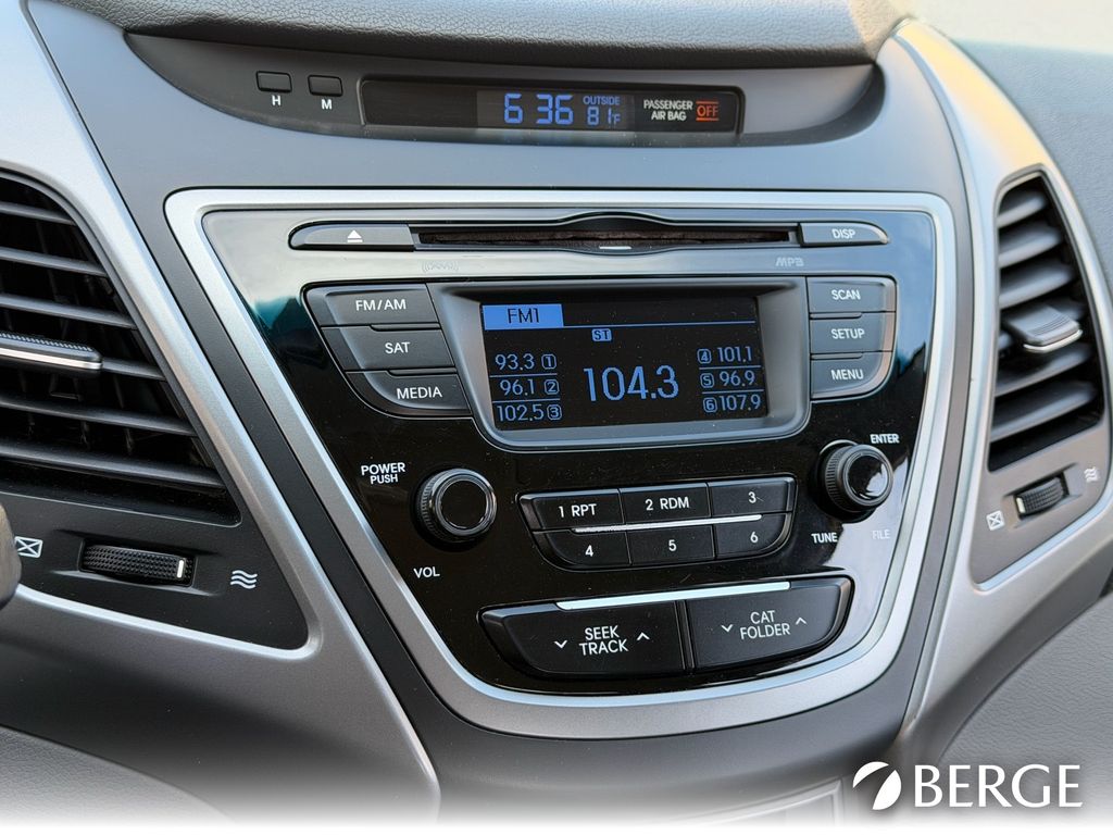 Serving The Valley For Over 40 Years! This Hyundai Elantra is equipped with the following features: 15" Steel Wheels w/Covers, 4-Wheel Disc Brakes, 6 Speakers, ABS brakes, Air Conditioning, AM/FM radio: SiriusXM, Brake assist, Bumpers: body-color, CD player, Delay-off headlights, Driver door bin, Driver vanity mirror, Dual front impact airbags, Dual front side impact airbags, Electronic Stability Control, Front anti-roll bar, Front Bucket Seats, Front Center Armrest w/Storage, Front reading lights, Front wheel independent suspension, Illuminated entry, Low tire pressure warning, Occupant sensing airbag, Outside temperature display, Overhead airbag, Overhead console, Panic alarm, Passenger door bin, Passenger vanity mirror, Power door mirrors, Power steering, Power windows, Premium Cloth Seat Trim, Radio: AM/FM/SiriusXM/CD/MP3 Audio System, Rear anti-roll bar, Rear seat center armrest, Rear window defroster, Remote keyless entry, Security system, Speed control, Speed-sensing steering, Split folding rear seat, Tachometer, Tilt steering wheel, Traction control, Trip computer, and Variably intermittent wipers.