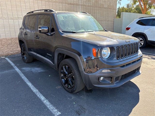 Serving The Valley For Over 40 Years! This Jeep Renegade is equipped with the following features: 6.5" Navigation Group w/Uconnect (5-Year SiriusXM Traffic Service, 5-Year SiriusXM Travel Link Service, GPS Navigation, HD Radio, Radio: Uconnect 6.5 Nav, and Remote USB Port), Passive Entry Keyless Go Package, Quick Order Package 27S Justice Edition (115V Auxiliary Power Outlet, Auto-Dimming Rear-View Mirror, Exterior Mirrors w/Heating Element, Exterior Mirrors w/Supplemental Signals, Gloss Black Fascia Applique, Gloss Black Steering Wheel Bezel, Power 8-Way Driver Manual 4-Way Passenger Seats, Remote Start System, and Upgraded Exterior Color Mirror), 16" x 6.5" Aluminum Wheels, 4-Wheel Disc Brakes, 4.438 Axle Ratio, 6 Speakers, ABS brakes, Air Conditioning, Alloy wheels, AM/FM radio: SiriusXM, Anti-whiplash front head restraints, Brake assist, Cloth Low-Back Bucket Seats, Compass, Delay-off headlights, Driver door bin, Driver vanity mirror, Dual front impact airbags, Dual front side impact airbags, Electronic Stability Control, Four wheel independent suspension, Front anti-roll bar, Front Bucket Seats, Front Center Armrest, Front fog lights, Front reading lights, Fully automatic headlights, Heated door mirrors, Illuminated entry, Knee airbag, Leather steering wheel, Low tire pressure warning, Manufacturer's Statement of Origin, Normal Duty Suspension, Occupant sensing airbag, Outside temperature display, Overhead airbag, Overhead console, Panic alarm, ParkView Rear Back-Up Camera, Passenger door bin, Passenger vanity mirror, Passive Entry/Keyless Go (DISC), Power door mirrors, Power steering, Power windows, Radio data system, Radio: Uconnect 5.0, Rear anti-roll bar, Rear window defroster, Rear window wiper, Remote keyless entry, Roof rack: rails only, Speed control, Split folding rear seat, Spoiler, Steering wheel mounted audio controls, Tachometer, Telescoping steering wheel, Tilt steering wheel, Traction control, Trip computer, Variably intermittent wipers, and Voltmeter.