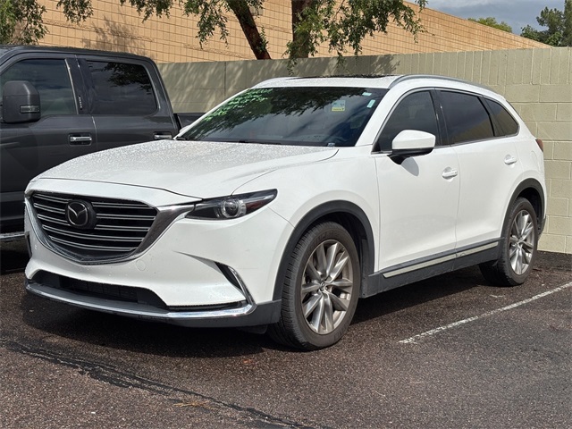 Serving The Valley For Over 40 Years! This Mazda CX-9 is equipped with the following features: AWD, 12 Speakers, 3rd row seats: bench, 4-Wheel Disc Brakes, ABS brakes, Aha Internet Radio, Air Conditioning, Alloy wheels, AM/FM radio: SiriusXM, Auto High-beam Headlights, Auto-dimming Rear-View mirror, Automatic temperature control, Axle Ratio: 4.411, Brake assist, Bumpers: body-color, Compass, Delay-off headlights, Driver door bin, Driver vanity mirror, Dual front impact airbags, Dual front side impact airbags, E911 Automatic Emergency Notification, Electronic Stability Control, Emergency communication system: Mazda Connect, Exterior Parking Camera Rear, Four wheel independent suspension, Front anti-roll bar, Front Bucket Seats, Front Center Armrest, Front dual zone A/C, Front fog lights, Front reading lights, Fully automatic headlights, Garage door transmitter: HomeLink, Genuine wood door panel insert, Heads-Up Display, Heated door mirrors, Heated Front Bucket Seats, Heated front seats, Illuminated entry, Infotainment System Voice Command, Lane Departure Warning System, Leather Shift Knob, Leather steering wheel, Low tire pressure warning, Memory seat, Nappa Leather Trimmed Seats, Navigation System, Occupant sensing airbag, Outside temperature display, Overhead airbag, Overhead console, Pandora Internet Radio, Panic alarm, Passenger door bin, Passenger vanity mirror, Power door mirrors, Power driver seat, Power Liftgate, Power moonroof, Power passenger seat, Power steering, Power windows, Radio Broadcast Data System Program Information, Radio data system, Radio: AM/FM Sound System w/Bose Audio, Rain sensing wipers, Rear air conditioning, Rear anti-roll bar, Rear Parking Sensors, Rear seat center armrest, Rear window defroster, Rear window wiper, Remote keyless entry, Roof rack: rails only, SIRIUSXM Satellite Radio, SMS Text Msg Audio Delivery & Reply, Speed control, Speed-sensing steering, Split folding rear seat, Spoiler, Steering wheel mounted audio controls, Stitcher Internet Radio, Tachometer, Telescoping steering wheel, Tilt steering wheel, Traction control, Trip computer, Turn signal indicator mirrors, Variably intermittent wipers, and Wheels: 20" x 8.5J Aluminum Alloy.