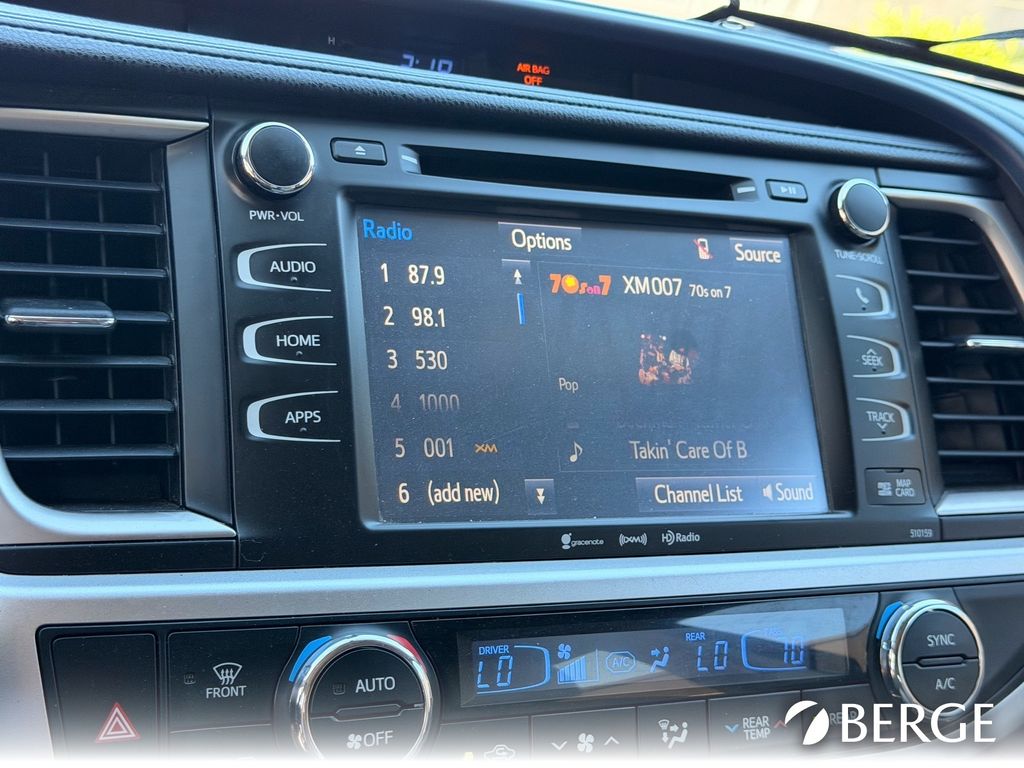 Serving The Valley For Over 40 Years! This Toyota Highlander is equipped with the following features: 3rd row seats: split-bench, 4-Wheel Disc Brakes, 4.154 Axle Ratio, 6 Speakers, ABS brakes, Air Conditioning, Alloy wheels, AM/FM radio: SiriusXM, Auto-dimming Rear-View mirror, Automatic temperature control, Brake assist, Bumpers: body-color, CD player, Delay-off headlights, Driver door bin, Driver vanity mirror, Dual front impact airbags, Dual front side impact airbags, Electronic Stability Control, Exterior Parking Camera Rear, Four wheel independent suspension, Front anti-roll bar, Front Bucket Seats, Front Center Armrest, Front dual zone A/C, Front fog lights, Front reading lights, Fully automatic headlights, Garage door transmitter, Heated door mirrors, Heated front seats, Illuminated entry, Knee airbag, Leather Seat Material, Leather Shift Knob, Low tire pressure warning, Navigation System, Occupant sensing airbag, Outside temperature display, Overhead airbag, Overhead console, Panic alarm, Passenger door bin, Passenger vanity mirror, Power door mirrors, Power driver seat, Power Liftgate, Power moonroof, Power steering, Power windows, Radio: Entune Premium Audio w/Nav & App Suite, Rear air conditioning, Rear anti-roll bar, Rear reading lights, Rear window defroster, Rear window wiper, Reclining 3rd row seat, Remote keyless entry, Roof rack: rails only, Security system, Speed control, Speed-sensing steering, Split folding rear seat, Spoiler, Steering wheel mounted audio controls, Tachometer, Telescoping steering wheel, Tilt steering wheel, Traction control, Trip computer, Turn signal indicator mirrors, Variably intermittent wipers, and Wheels: 18" Split 5-Spoke Machined-Face Alloy.