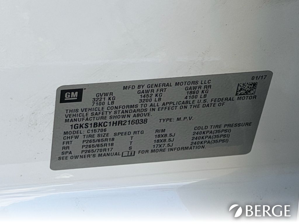 - VIN : 1GKS1BKC1HR216038