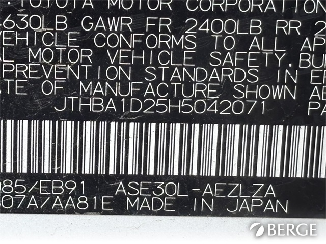 - VIN : JTHBA1D25H5042071