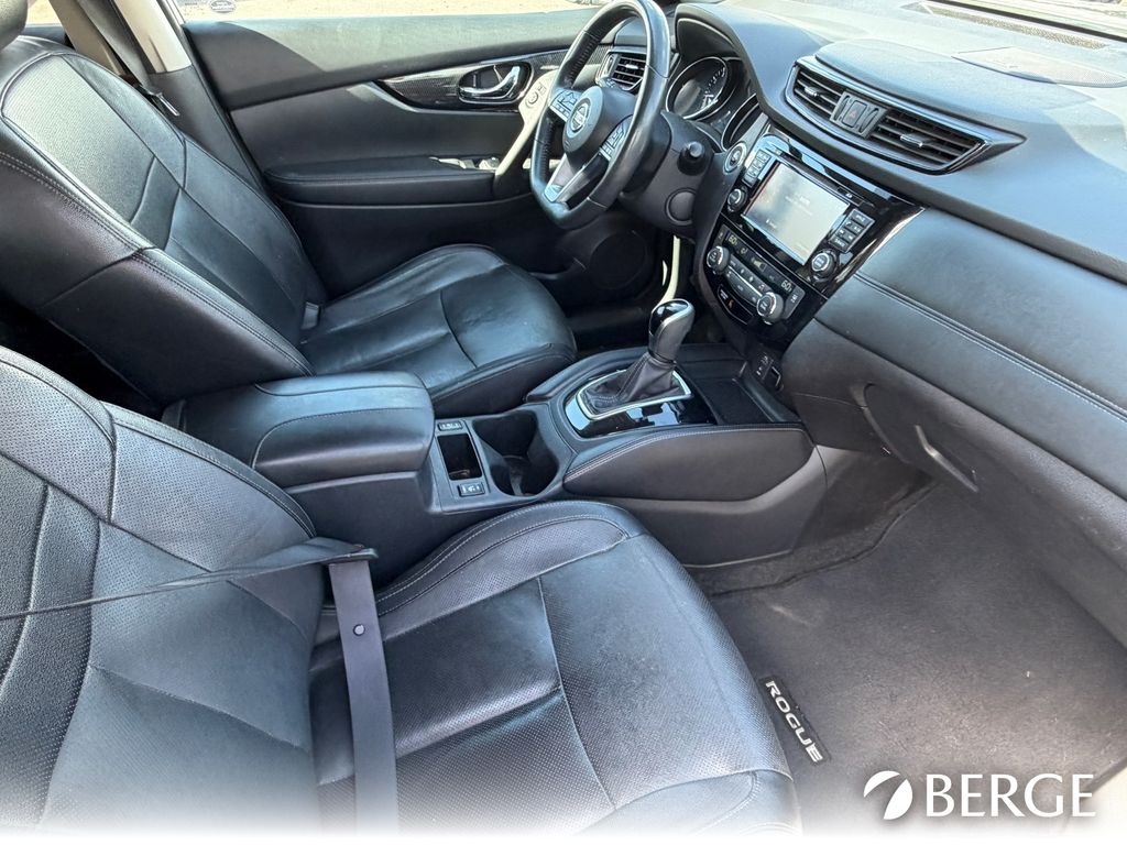 Serving The Valley For Over 40 Years! This Nissan Rogue is equipped with the following features: AWD, 4-Wheel Disc Brakes, 9 Speakers, ABS brakes, Air Conditioning, Alloy wheels, AM/FM radio: SiriusXM, Anti-whiplash front head restraints, Auto High-beam Headlights, Auto-dimming Rear-View mirror, Automatic temperature control, Black Splash Guards (Set of 4), Blind Spot Warning, Brake assist, Bumpers: body-color, CD player, Chrome Rear Bumper Protector, Delay-off headlights, Driver door bin, Driver vanity mirror, Dual front impact airbags, Dual front side impact airbags, Electronic Stability Control, Four wheel independent suspension, Front anti-roll bar, Front Bucket Seats, Front Center Armrest w/Storage, Front dual zone A/C, Front fog lights, Front reading lights, Fully automatic headlights, Garage door transmitter: HomeLink, Heated door mirrors, Heated front seats, Heated steering wheel, Illuminated entry, Leather Appointed Seat Trim, Leather Shift Knob, Low tire pressure warning, Memory seat, Navigation System, Occupant sensing airbag, Outside temperature display, Overhead airbag, Overhead console, Panic alarm, Passenger door bin, Passenger vanity mirror, Power door mirrors, Power driver seat, Power Liftgate, Power steering, Power windows, Quick Comfort Heated Front Bucket Seats, Radio data system, Rear anti-roll bar, Rear seat center armrest, Rear window defroster, Rear window wiper, Remote keyless entry, Retractable Cargo Cover, Roof rack: rails only, Security system, Speed control, Speed-sensing steering, Split folding rear seat, Spoiler, Steering wheel mounted audio controls, Tachometer, Telescoping steering wheel, Tilt steering wheel, Traction control, Trip computer, Turn signal indicator mirrors, and Variably intermittent wipers.
