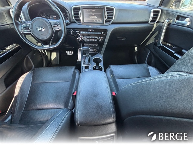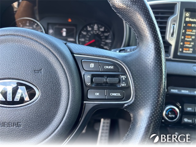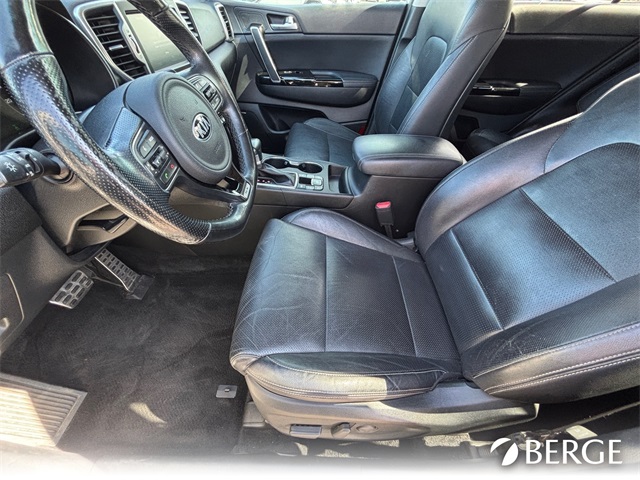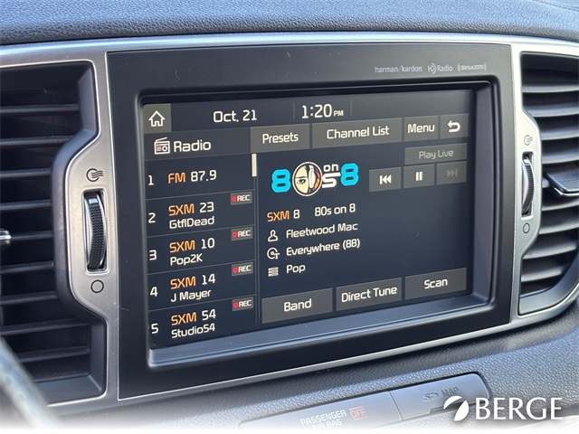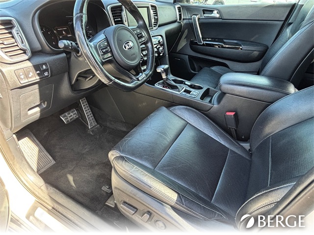 Serving The Valley For Over 40 Years! This Kia Sportage is equipped with the following features: AWD, 19" Alloy Wheels, 3.32 Axle Ratio, 4-Wheel Disc Brakes, 8 Speakers, ABS brakes, Air Conditioning, Alloy wheels, AM/FM radio: SiriusXM, Apple CarPlay & Android Auto, Auto High-beam Headlights, Auto-dimming Rear-View mirror, Automatic temperature control, Brake assist, Bumper Applique, Bumpers: body-color, Cargo Cover, Cargo Net, Carpet Floor Mats, Delay-off headlights, Driver door bin, Driver vanity mirror, Dual front impact airbags, Dual front side impact airbags, Electronic Stability Control, Emergency communication system: 911 Connect, Exterior Parking Camera Rear, Four wheel independent suspension, Front anti-roll bar, Front Bucket Seats, Front Center Armrest, Front dual zone A/C, Front fog lights, Front reading lights, Fully automatic headlights, Garage door transmitter: HomeLink, harman/kardon Speakers, Heated & Ventilated Front Bucket Seats, Heated door mirrors, Heated front seats, Heated steering wheel, High intensity discharge headlights: Bi-Xenon, Illuminated entry, Leather Seat Trim, Leather Shift Knob, Low tire pressure warning, Navigation System, Occupant sensing airbag, Outside temperature display, Overhead airbag, Overhead console, Panic alarm, Passenger door bin, Passenger vanity mirror, Power door mirrors, Power driver seat, Power Liftgate, Power moonroof, Power passenger seat, Power steering, Power windows, Radio: AM/FM/MP3/SiriusXM, Rear anti-roll bar, Rear seat center armrest, Rear window defroster, Rear window wiper, Remote keyless entry, Roof rack: rails only, Security system, Speed control, Speed-sensing steering, Split folding rear seat, Spoiler, Sport steering wheel, Steering wheel mounted audio controls, Tachometer, Telescoping steering wheel, Tilt steering wheel, Traction control, Trip computer, Turn signal indicator mirrors, Variably intermittent wipers, and Ventilated front seats.