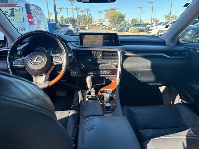 Serving The Valley For Over 40 Years! This Lexus RX is equipped with the following features: Black, 3.329 Axle Ratio, 4-Wheel Disc Brakes, 9 Speakers, ABS brakes, Air Conditioning, Alloy wheels, AM/FM radio: SiriusXM, Anti-whiplash front head restraints, Auto High-beam Headlights, Auto-dimming Rear-View mirror, Automatic temperature control, Backup Monitor, Brake assist, Bumpers: body-color, CD player, Compass, Delay-off headlights, Distance pacing cruise control: All-Speed Dynamic Radar Cruise Control, Driver door bin, Driver vanity mirror, Dual front impact airbags, Dual front side impact airbags, Electronic Stability Control, Exterior Parking Camera Rear, Four wheel independent suspension, Front anti-roll bar, Front Bucket Seats, Front Center Armrest, Front dual zone A/C, Front fog lights, Front reading lights, Fully automatic headlights, Garage door transmitter: HomeLink, Heated door mirrors, Illuminated entry, Knee airbag, Leather Shift Knob, Leather steering wheel, Low tire pressure warning, NuLuxe Seat Trim, Occupant sensing airbag, Outside temperature display, Overhead airbag, Overhead console, Panic alarm, Passenger door bin, Passenger vanity mirror, Power door mirrors, Power driver seat, Power Liftgate, Power passenger seat, Power steering, Power windows, Radio data system, Radio: AM/FM/CD Lexus Display Audio, Rain sensing wipers, Rear anti-roll bar, Rear reading lights, Rear seat center armrest, Rear side impact airbag, Rear window defroster, Rear window wiper, Remote keyless entry, Security system, Speed control, Speed-sensing steering, Split folding rear seat, Spoiler, Steering wheel mounted audio controls, Tachometer, Telescoping steering wheel, Tilt steering wheel, Traction control, Trip computer, Turn signal indicator mirrors, Variably intermittent wipers, and Wheels: 18" x 8" 7-Spoke Aluminum.