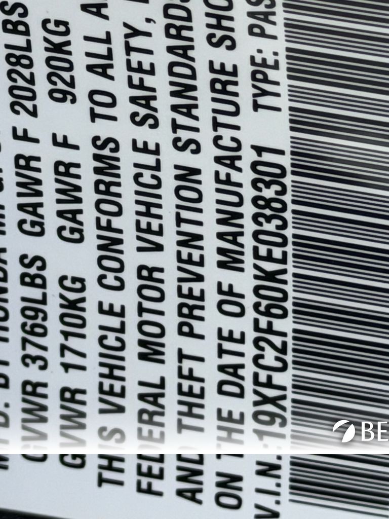 - VIN : 19XFC2F60KE038301