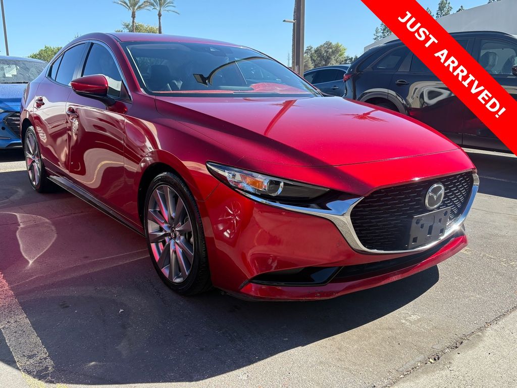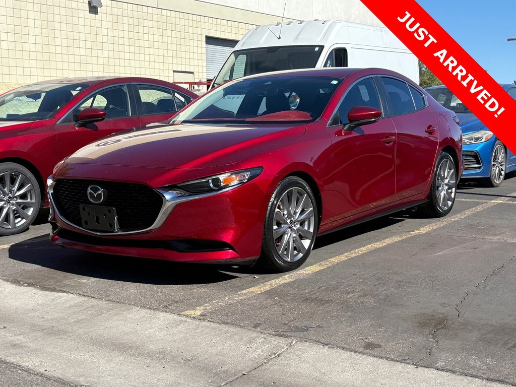 Serving The Valley For Over 40 Years! This Mazda Mazda3 is equipped with the following features: Preferred Package (Aluminum Speaker Grille, Auto Headlights (On/Off), Blind Spot Monitoring w/Rear Cross Traffic Alert, Driver Attention Alert, Dual Zone Automatic Climate Control, Exterior Mirrors w/Memory Positioning, Front Grille Black Gloss Paint, Front Lower Bumper Black Gloss Decoration, High Beam Control, Lane Departure Warning System, Lane Keep Assist, Leather Steering Wheel & Shift Knob, Mazda Advanced Keyless Entry, Mazda Radar Cruise Control w/Stop & Go, Overhead Console w/Sunglass Holder, Rain Sensing Wipers, Rear Armrest w/Cup Holders, Side Mirror Turn Lamps, Smart Brake Support, and Vanity Mirror Illumination), 12 Speakers, 18" x 7J Alloy Wheels, 4-Wheel Disc Brakes, ABS brakes, Air Conditioning, Alloy wheels, AM/FM radio: SiriusXM, AppLink/Apple CarPlay and Android Auto, Auto High-beam Headlights, Automatic temperature control, Brake assist, Bumpers: body-color, Compass, Delay-off headlights, Driver door bin, Driver vanity mirror, Dual front impact airbags, Dual front side impact airbags, Electronic Stability Control, Emergency communication system: MAZDA CONNECT, Exterior Parking Camera Rear, Front anti-roll bar, Front Bucket Seats, Front Center Armrest, Front dual zone A/C, Front reading lights, Front wheel independent suspension, Fully automatic headlights, Heated Front Bucket Seats, Heated front seats, Illuminated entry, Knee airbag, Leather Shift Knob, Leatherette Seat Trim, Low tire pressure warning, Memory seat, Occupant sensing airbag, Outside temperature display, Overhead airbag, Overhead console, Panic alarm, Passenger door bin, Passenger vanity mirror, Power door mirrors, Power driver seat, Power steering, Power windows, Radio data system, Radio: AM/FM Audio System, Rain sensing wipers, Rear seat center armrest, Rear window defroster, Remote keyless entry, Soul Red Metallic Paint Charge, Speed control, Speed-sensing steering, Split folding rear seat, Steering wheel mounted audio controls, Tachometer, Telescoping steering wheel, Tilt steering wheel, Traction control, Trip computer, Turn signal indicator mirrors, and Variably intermittent wipers.