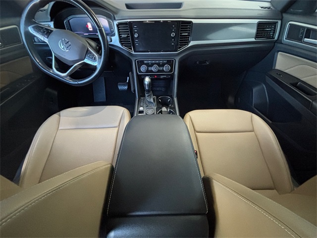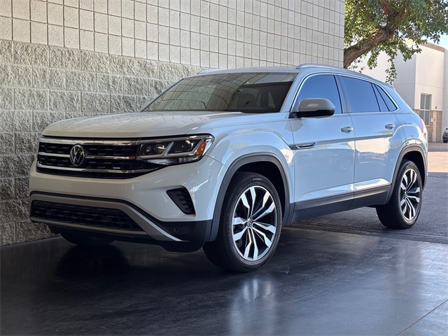 Serving The Valley For Over 40 Years! This Volkswagen Atlas Cross Sport is equipped with the following features: 3.60 Axle Ratio, 4-Wheel Disc Brakes, 6 Speakers, ABS brakes, Active Blind Spot Monitor, Air Conditioning, Alloy wheels, AM/FM radio: SiriusXM, Auto High-beam Headlights, Auto-dimming Rear-View mirror, Automatic temperature control, Brake assist, Bumpers: body-color, Compass, Delay-off headlights, Driver door bin, Driver vanity mirror, Dual front impact airbags, Dual front side impact airbags, Electronic Stability Control, Emergency communication system: VW Car-Net services (capabilities require enrollment or subscription), Exterior Parking Camera Rear, Four wheel independent suspension, Front anti-roll bar, Front Bucket Seats, Front Center Armrest, Front dual zone A/C, Front fog lights, Front reading lights, Fully automatic headlights, Heated Comfort Front Bucket Seats, Heated door mirrors, Heated front seats, Heated steering wheel, Heavy Duty Trunk Liner w/VW CarGo Blocks, Illuminated entry, Leather Shift Knob, Low tire pressure warning, Memory seat, Navigation System, Occupant sensing airbag, Outside temperature display, Overhead airbag, Overhead console, Panic alarm, Passenger door bin, Passenger vanity mirror, Power door mirrors, Power driver seat, Power Liftgate, Power moonroof, Power passenger seat, Power steering, Power windows, Radio data system, Radio: Discover Media w/8.0" Touchscreen Nav, Rain sensing wipers, Rear anti-roll bar, Rear reading lights, Rear seat center armrest, Rear window defroster, Rear window wiper, Remote CD player, Remote keyless entry, Roadside Assistance Kit, Roof rack: rails only, Rubber Mats Kit, Security system, Speed control, Speed-sensing steering, Split folding rear seat, Spoiler, Standard Suspension, Steering wheel mounted audio controls, Tachometer, Telescoping steering wheel, Tilt steering wheel, Traction control, Trip computer, Turn signal indicator mirrors, V-Tex Leatherette Seating Surfaces, Variably intermittent wipers, VW App-Connect (w/Apple CarPlay, Android Auto & MirrorLink), and Wheels: 20" 5-Spoke Silver Alloy (V71)