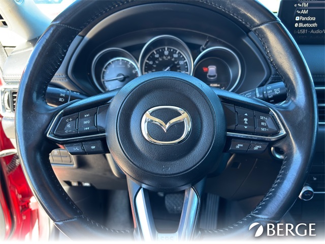 Serving The Valley For Over 40 Years! This Mazda CX-5 is equipped with the following features: 4-Wheel Disc Brakes, 4.325 Axle Ratio, 6 Speakers, ABS brakes, Air Conditioning, Alloy wheels, AM/FM radio, AppLink/Apple CarPlay and Android Auto, Auto High-beam Headlights, Automatic temperature control, Brake assist, Bumpers: body-color, Delay-off headlights, Driver door bin, Driver vanity mirror, Dual front impact airbags, Dual front side impact airbags, Electronic Stability Control, Emergency communication system: MAZDA CONNECT, Exterior Parking Camera Rear, Four wheel independent suspension, Front anti-roll bar, Front Bucket Seats, Front Center Armrest, Front dual zone A/C, Front reading lights, Fully automatic headlights, Heated Front Bucket Seats, Heated front seats, Illuminated entry, Leather Shift Knob, Leatherette Seat Trim, Low tire pressure warning, Occupant sensing airbag, Outside temperature display, Overhead airbag, Overhead console, Panic alarm, Passenger door bin, Passenger vanity mirror, Power door mirrors, Power driver seat, Power steering, Power windows, Radio data system, Radio: AM/FM/HD Audio System, Rain sensing wipers, Rear anti-roll bar, Rear reading lights, Rear seat center armrest, Rear window defroster, Rear window wiper, Remote keyless entry, Soul Red Crystal Metallic Paint, Speed control, Speed-sensing steering, Split folding rear seat, Spoiler, Steering wheel mounted audio controls, Tachometer, Telescoping steering wheel, Tilt steering wheel, Traction control, Trip computer, Turn signal indicator mirrors, Variably intermittent wipers, and Wheels: 17" x 7J Aluminum Alloy.