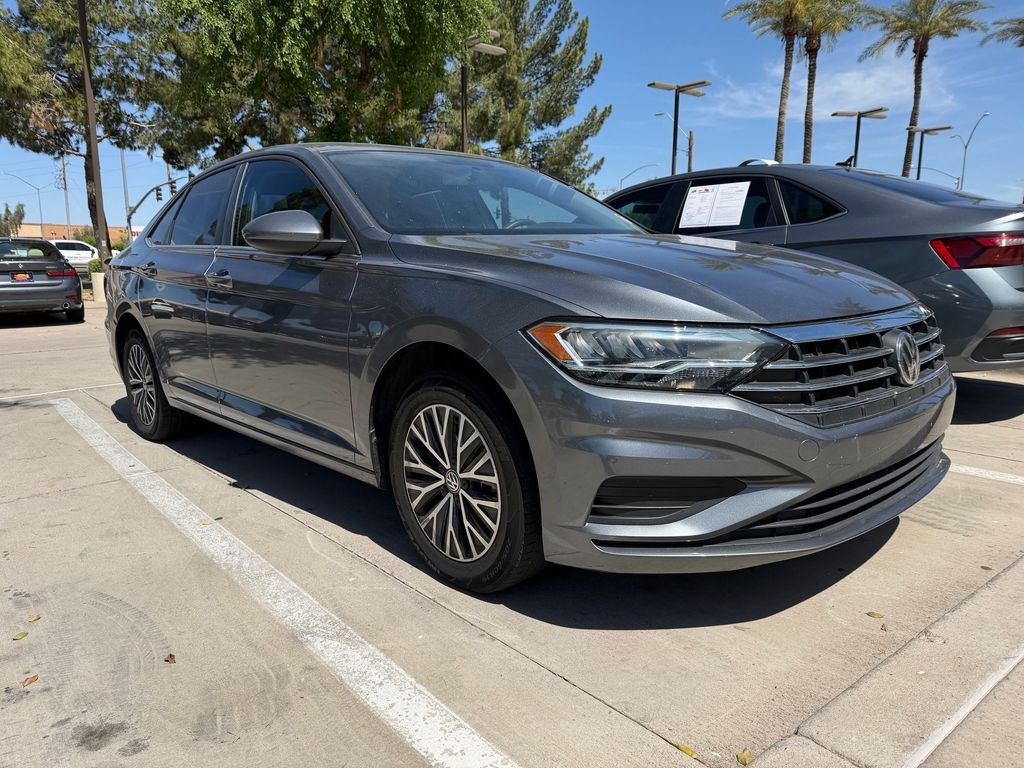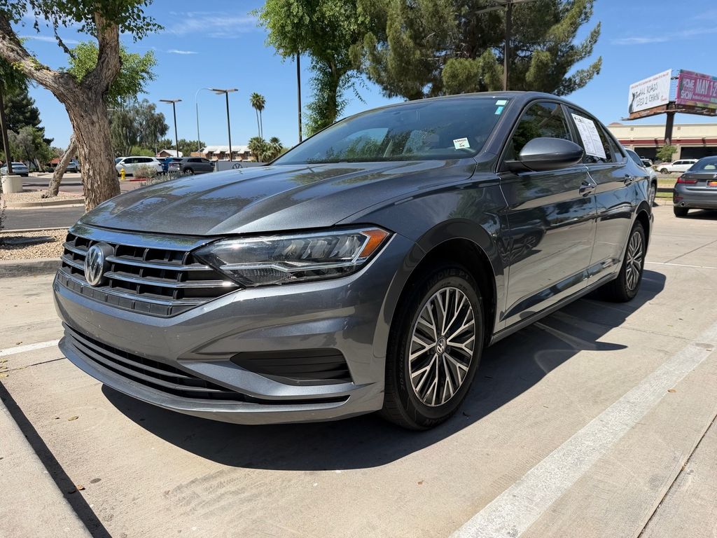 Serving The Valley For Over 40 Years! This Volkswagen Jetta is equipped with the following features: Cloth, 4 Speakers, 4-Wheel Disc Brakes, ABS brakes, Air Conditioning, Alloy wheels, AM/FM radio, Brake assist, Bumpers: body-color, Cloth Seat Trim, Delay-off headlights, Driver door bin, Driver vanity mirror, Dual front impact airbags, Dual front side impact airbags, Electronic Stability Control, Emergency communication system: VW Car-Net services (capabilities require enrollment or subscription), Exterior Parking Camera Rear, Front anti-roll bar, Front Bucket Seats, Front Center Armrest, Front Comfort Seats, Front wheel independent suspension, Fully automatic headlights, Illuminated entry, Low tire pressure warning, Occupant sensing airbag, Outside temperature display, Overhead airbag, Overhead console, Panic alarm, Passenger door bin, Passenger vanity mirror, Power door mirrors, Power steering, Power windows, Radio data system, Radio: Composition Color w/6.5" Touchscreen, Rear anti-roll bar, Rear reading lights, Rear window defroster, Remote keyless entry, Speed control, Speed-sensing steering, Split folding rear seat, Steering wheel mounted audio controls, Tachometer, Telescoping steering wheel, Tilt steering wheel, Traction control, Trip computer, Variably intermittent wipers, and Wheels: 16" 2-Tone Machined Alloy.