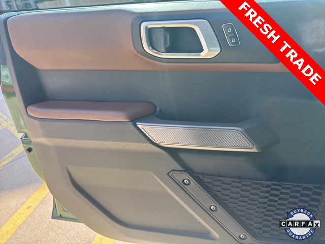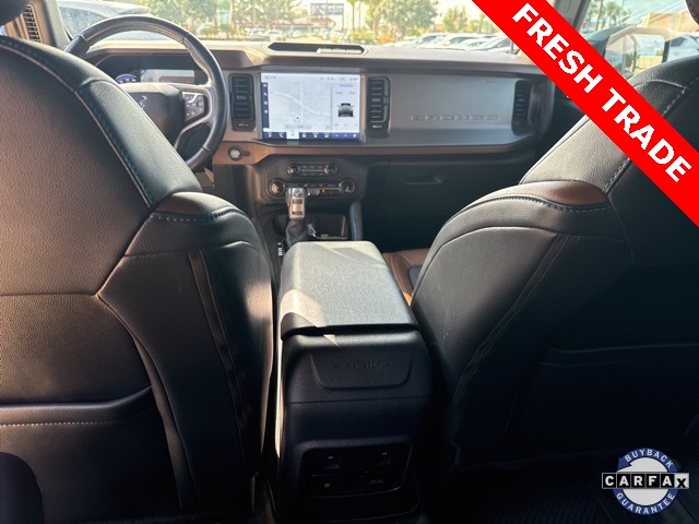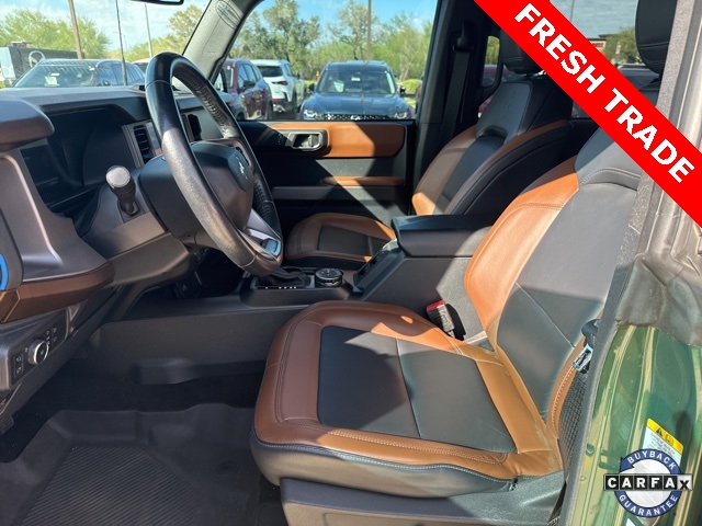 Serving The Valley For Over 40 Years! This Ford Bronco is equipped with the following features: Equipment Group 314A Lux Package (12" LCD Capacitive Touchscreen w/Swipe Capability, 360-Degree Camera, Adaptive Cruise Control, Additional Sound Deadening, Connected Built-In Navigation, Heated Steering Wheel, Information on Demand Panel, Radio: B&O Sound System by Bang & Olufsen, Sideview Mirrors, and Wireless Charging Pad), 18" Bright Machined Aluminum Wheels, 3.73 Axle Ratio, 4-Wheel Disc Brakes, 6 Speakers, ABS brakes, Air Conditioning, Alloy wheels, AM/FM radio: SiriusXM with 360L, AM/FM Stereo, Auto High-beam Headlights, Auto-dimming Rear-View mirror, Automatic temperature control, Brake assist, Carbonized Gray Molded-In-Color Hard Top, Compass, Connected Navigation, Delay-off headlights, Driver door bin, Driver vanity mirror, Dual front impact airbags, Dual front side impact airbags, Electronic Stability Control, Emergency communication system: 911 Assist, Exterior Parking Camera Rear, Front & Rear Floor Liners, Front anti-roll bar, Front Bucket Seats, Front Center Armrest, Front dual zone A/C, Front fog lights, Front reading lights, Front wheel independent suspension, Fully automatic headlights, Heated Cloth Bucket Seats, Heated door mirrors, Heated front seats, Illuminated entry, Integrated roll-over protection, Leather Shift Knob, Low tire pressure warning, Navigation System, Navigation system: Connected Navigation, Occupant sensing airbag, Outside temperature display, Overhead airbag, Overhead console, Panic alarm, Passenger door bin, Passenger vanity mirror, Power door mirrors, Power steering, Power windows, Radio data system, Rear-Window Defroster & Washer, Remote keyless entry, Security system, SiriusXM Radio w/360L, Speed control, Split folding rear seat, Steering wheel mounted audio controls, SYNC 4, Tachometer, Telescoping steering wheel, Tilt steering wheel, Towing Capability, Traction control, Trip computer, Variably intermittent wipers, and Voltmeter.