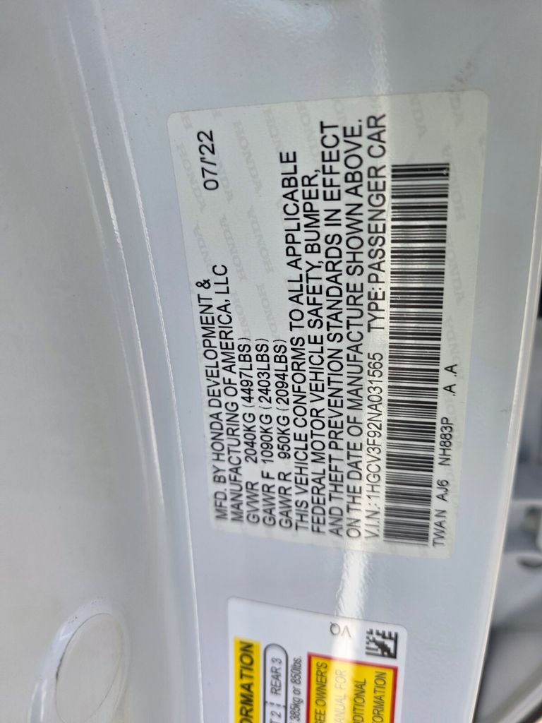 - VIN : 1HGCV3F92NA031565