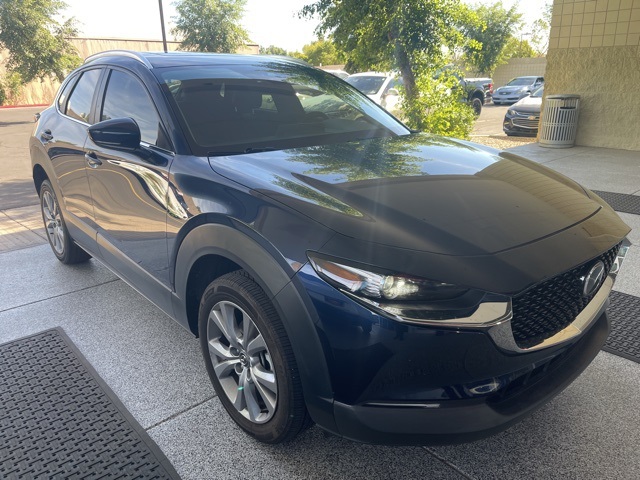 Serving The Valley For Over 40 Years! This Mazda CX-30 is equipped with the following features: 3.850 Axle Ratio, 4-Wheel Disc Brakes, 8 Speakers, ABS brakes, Air Conditioning, Alloy wheels, AM/FM radio, AppLink/Apple CarPlay and Android Auto, Auto High-beam Headlights, Automatic temperature control, Brake assist, Bumpers: body-color, Cargo Cover, Cargo Tray, Compass, Delay-off headlights, Driver door bin, Driver vanity mirror, Dual front impact airbags, Dual front side impact airbags, Electronic Stability Control, Emergency communication system: Mazda Connected Services (Automatic 911 Dialing), Exterior Parking Camera Rear, Front anti-roll bar, Front Bucket Seats, Front Center Armrest, Front dual zone A/C, Front reading lights, Front wheel independent suspension, Fully automatic headlights, Heated Front Bucket Seats, Heated front seats, Illuminated entry, Knee airbag, Leather Shift Knob, Leather steering wheel, Leatherette Seat Trim, Low tire pressure warning, MAZDA CONNECT Infotainment System, Memory seat, Occupant sensing airbag, Outside temperature display, Overhead airbag, Overhead console, Panic alarm, Passenger door bin, Passenger vanity mirror, Power door mirrors, Power driver seat, Power moonroof, Power steering, Power windows, Radio data system, Radio: AM/FM/HD Audio System, Rain sensing wipers, Rear seat center armrest, Rear window defroster, Rear window wiper, Remote keyless entry, Roof rack: rails only, Speed control, Speed-sensing steering, Split folding rear seat, Spoiler, Steering wheel mounted audio controls, Tachometer, Telescoping steering wheel, Tilt steering wheel, Traction control, Trip computer, Turn signal indicator mirrors, Variably intermittent wipers, and Wheels: 18" x 7J Aluminum Alloy.