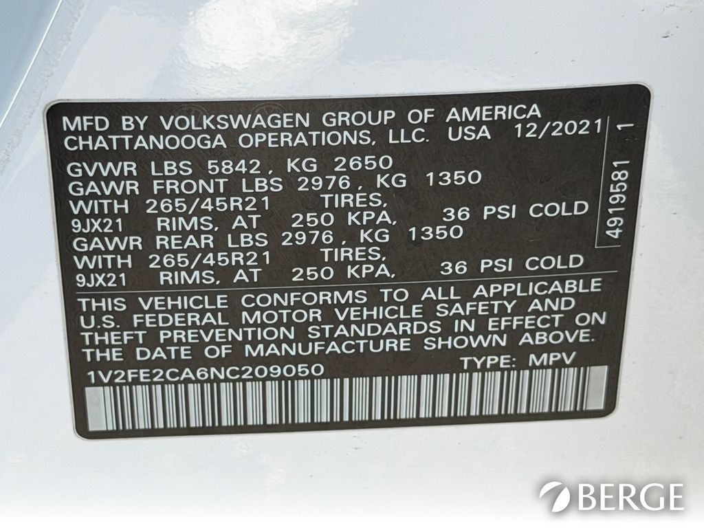 Serving The Valley For Over 40 Years! This Volkswagen Atlas Cross Sport is equipped with the following features: 12 Speakers, 3.60 Axle Ratio, 4-Wheel Disc Brakes, ABS brakes, Air Conditioning, Alloy wheels, AM/FM radio: SiriusXM with 360L, Auto High-beam Headlights, Auto-dimming Rear-View mirror, Automatic temperature control, Brake assist, Bumpers: body-color, Compass, Delay-off headlights, Driver door bin, Driver vanity mirror, Dual front impact airbags, Dual front side impact airbags, Electronic Stability Control, Emergency communication system, Four wheel independent suspension, Front anti-roll bar, Front Bucket Seats, Front Center Armrest, Front dual zone A/C, Front fog lights, Front reading lights, Fully automatic headlights, Heated & Ventilated Front Comfort Sport Seats, Heated door mirrors, Heated front seats, Heated rear seats, Heated steering wheel, Illuminated entry, Leather Shift Knob, Low tire pressure warning, Memory seat, Navigation System, Occupant sensing airbag, Outside temperature display, Overhead airbag, Overhead console, Panic alarm, Passenger door bin, Passenger vanity mirror, Perforated Vienna Leather Seating Surfaces, Power door mirrors, Power driver seat, Power Liftgate, Power moonroof: Panoramic, Power passenger seat, Power steering, Power windows, Radio data system, Radio: MIB3 Discover Media w/8" Touchscreen Navigation, Rain sensing wipers, Rear anti-roll bar, Rear reading lights, Rear seat center armrest, Rear window defroster, Rear window wiper, Remote keyless entry, Roof rack: rails only, Security system, Speed control, Speed-sensing steering, Split folding rear seat, Spoiler, Sport steering wheel, Standard Suspension, Steering wheel mounted audio controls, Tachometer, Telescoping steering wheel, Tilt steering wheel, Traction control, Trip computer, Turn signal indicator mirrors, Variably intermittent wipers, Ventilated front seats, and Wheels: 21" x 8J 2-Tone Machined Alloy.