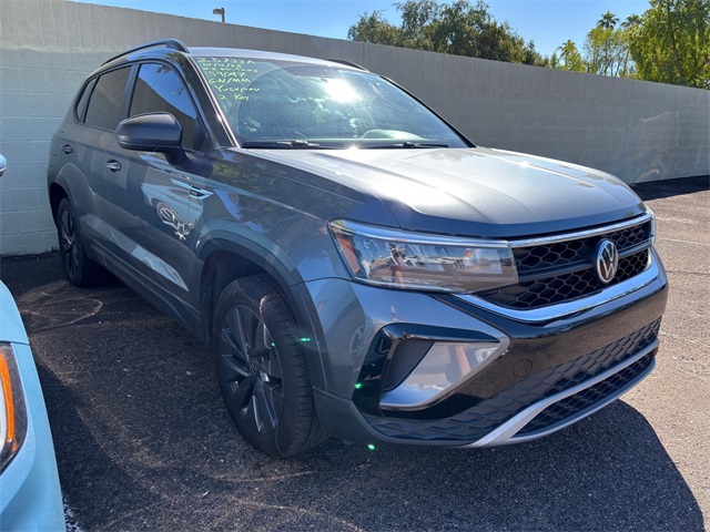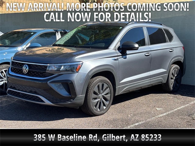 Serving The Valley For Over 40 Years! This Volkswagen Taos is equipped with the following features: 17" Silver Alloy Wheels, 3.23 Axle Ratio, 4-Wheel Disc Brakes, 6 Speakers, ABS brakes, Air Conditioning, Alloy wheels, AM/FM radio, Brake assist, Bumpers: body-color, Cloth Seating Surfaces, Compass, Delay-off headlights, Driver door bin, Driver vanity mirror, Dual front impact airbags, Dual front side impact airbags, Electronic Stability Control, Emergency communication system: Car-Net, Exterior Parking Camera Rear, Front anti-roll bar, Front Bucket Seats, Front Center Armrest, Front reading lights, Front Strut Rear Torsion Beam Suspension, Front wheel independent suspension, Fully automatic headlights, Illuminated entry, Low tire pressure warning, Occupant sensing airbag, Outside temperature display, Overhead airbag, Overhead console, Panic alarm, Passenger door bin, Passenger vanity mirror, Power door mirrors, Power steering, Power windows, Radio data system, Radio: Composition Color AM/FM, Rear anti-roll bar, Rear seat center armrest, Rear window defroster, Rear window wiper, Remote keyless entry, Roof rack: rails only, Speed control, Speed-sensing steering, Split folding rear seat, Spoiler, Steering wheel mounted audio controls, Tachometer, Telescoping steering wheel, Tilt steering wheel, Traction control, Trip computer, and Variably intermittent wipers.
