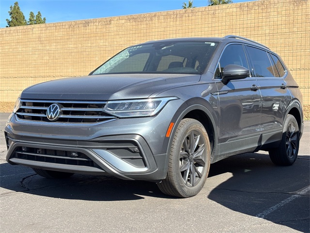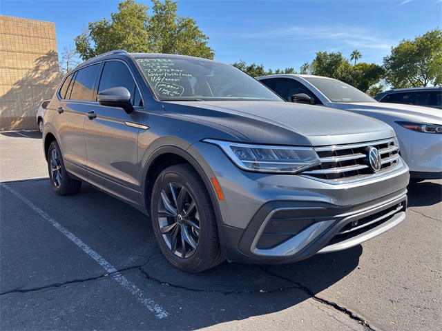 Serving The Valley For Over 40 Years! This Volkswagen Tiguan is equipped with the following features: Panoramic Sunroof Package, 3-Row Rubber Monster Mats w/Logo Kit (Set of 5), 3.33 Axle Ratio, 3rd row seats: bench, 4-Wheel Disc Brakes, 4-Wheel Independent Suspension, 6 Speakers, ABS brakes, Air Conditioning, Alloy wheels, AM/FM radio: SiriusXM with 360L, Auto-Dimming Rear-View Mirror, Auto-dimming Rear-View mirror, Automatic temperature control, Brake assist, Bumperdillo Rear Bumper Protection Plate in Chrome, Bumpers: body-color, Compass, Delay-off headlights, Driver door bin, Driver vanity mirror, Dual front impact airbags, Dual front side impact airbags, Electronic Stability Control, Emergency communication system: Car-Net, Exterior Parking Camera Rear, Four wheel independent suspension, Front anti-roll bar, Front Bucket Seats, Front Center Armrest, Front dual zone A/C, Front reading lights, Fully automatic headlights, Heated door mirrors, Heated Front Comfort Seats, Heated front seats, Heavy Duty Trunk Liner w/VW CarGo Blocks, Illuminated entry, Leather Shift Knob, Low tire pressure warning, Luggage Net, Occupant sensing airbag, Outside temperature display, Overhead airbag, Overhead console, Panic alarm, Passenger door bin, Passenger vanity mirror, Perforated V-Tex Leatherette Seating Surfaces, Power door mirrors, Power driver seat, Power Liftgate, Power Rear Liftgate Delete, Power steering, Power windows, Radio data system, Radio: MIB3 Composition Media AM/FM/HD, Rain sensing wipers, Rear anti-roll bar, Rear reading lights, Rear seat center armrest, Rear Sensors Delete, Rear window defroster, Rear window wiper, Remote keyless entry, Roof rack: rails only, Security system, Speed control, Speed-sensing steering, Split folding rear seat, Spoiler, Steering wheel mounted audio controls, Tachometer, Telescoping steering wheel, Tilt steering wheel, Traction control, Trip computer, Turn signal indicator mirrors, Variably intermittent wipers, and Wheels: 18" Dark Graphite 10-Spoke Alloy.