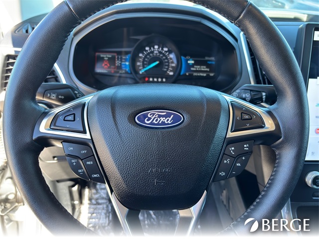 Serving The Valley For Over 40 Years! This Ford Edge is equipped with the following features: Equipment Group 300A, AWD, 12 Speakers, 3.80 Axle Ratio, 4-Wheel Disc Brakes, ABS brakes, ActiveX-Trimmed Heated Sport Bucket Seats, Air Conditioning, Alloy wheels, AM/FM radio: SiriusXM with 360L, Auto High-beam Headlights, Auto-dimming Rear-View mirror, Automatic temperature control, Brake assist, Bumpers: body-color, Compass, Delay-off headlights, Driver door bin, Driver vanity mirror, Dual front impact airbags, Dual front side impact airbags, Electronic Stability Control, Emergency communication system: SYNC 4 911 Assist, FordPass Connect, Four wheel independent suspension, Front anti-roll bar, Front Bucket Seats, Front Center Armrest w/Storage, Front dual zone A/C, Front fog lights, Front License Plate Bracket, Front reading lights, Fully automatic headlights, Garage door transmitter, Heated door mirrors, Heated front seats, Heated steering wheel, Illuminated entry, Knee airbag, Leather steering wheel, Low tire pressure warning, Memory seat, Occupant sensing airbag, Outside temperature display, Overhead airbag, Overhead console, Panic alarm, Passenger door bin, Passenger vanity mirror, Power door mirrors, Power driver seat, Power Liftgate, Power passenger seat, Power steering, Power windows, Radio: B&O Sound System by Bang & Olufsen, Rain sensing wipers, Rear anti-roll bar, Rear reading lights, Rear seat center armrest, Rear window defroster, Rear window wiper, Remote keyless entry, Security system, SiriusXM w/360L, Speed control, Speed-Sensitive Wipers, Split folding rear seat, Spoiler, Steering wheel mounted audio controls, SYNC 4A w/Enhanced Voice Recognition, Tachometer, Telescoping steering wheel, Tilt steering wheel, Traction control, Trip computer, Turn signal indicator mirrors, Variably intermittent wipers, and Wheels: 19" Luster Nickel-Painted Aluminum.