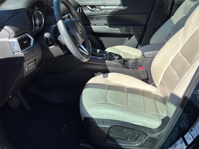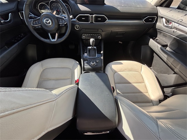 Serving The Valley For Over 40 Years! This Mazda CX-5 is equipped with the following features: 4-Wheel Disc Brakes, 4.624 Axle Ratio, 6 Speakers, ABS brakes, Air Conditioning, Alloy wheels, AM/FM radio, AppLink/Apple CarPlay and Android Auto, Auto High-beam Headlights, Auto-dimming Rear-View mirror, Automatic temperature control, Brake assist, Bumpers: body-color, Cargo Net, Cargo Tray, Delay-off headlights, Driver door bin, Driver vanity mirror, Dual front impact airbags, Dual front side impact airbags, E911 Automatic Emergency Notification, Electronic Stability Control, Emergency communication system: MAZDA CONNECT, Exterior Parking Camera Rear, Four wheel independent suspension, Front anti-roll bar, Front Bucket Seats, Front Center Armrest w/Storage, Front dual zone A/C, Front reading lights, Fully automatic headlights, Garage door transmitter: HomeLink, Heated Front Bucket Seats, Heated front seats, Illuminated entry, Infotainment System Voice Command, Leather Seat Trim, Leather Shift Knob, Low tire pressure warning, Memory seat, Multifunction Commander Control, Occupant sensing airbag, Outside temperature display, Overhead airbag, Overhead console, Pandora, Panic alarm, Passenger door bin, Passenger vanity mirror, Power door mirrors, Power driver seat, Power Liftgate, Power moonroof, Power passenger seat, Power steering, Power windows, Radio Broadcast Data System Program Information, Radio data system, Radio: AM/FM/HD Audio System, Rain sensing wipers, Rear anti-roll bar, Rear reading lights, Rear seat center armrest, Rear window defroster, Rear window wiper, Remote keyless entry, SMS Text Msg Audio Delivery & Reply, Speed control, Speed-sensing steering, Split folding rear seat, Spoiler, Steering wheel mounted audio controls, Tachometer, Telescoping steering wheel, Tilt steering wheel, Traction control, Trip computer, Turn signal indicator mirrors, Variably intermittent wipers, and Wheels: 17" x 7J Aluminum Alloy.