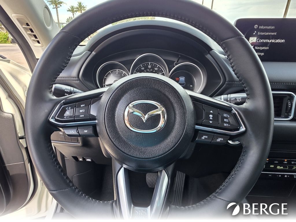 Serving The Valley For Over 40 Years! This Mazda CX-5 is equipped with the following features: Mazda Certified Pre-Owned Certified, 4-Wheel Disc Brakes, 4.624 Axle Ratio, 6 Speakers, ABS brakes, Air Conditioning, Alloy wheels, AM/FM radio, AppLink/Apple CarPlay and Android Auto, Auto High-beam Headlights, Automatic temperature control, Brake assist, Bumpers: body-color, Cargo Tray, Delay-off headlights, Driver door bin, Driver vanity mirror, Dual front impact airbags, Dual front side impact airbags, E911 Automatic Emergency Notification, Electronic Stability Control, Emergency communication system: MAZDA CONNECT, Exterior Parking Camera Rear, Four wheel independent suspension, Front anti-roll bar, Front Bucket Seats, Front Center Armrest w/Storage, Front dual zone A/C, Front reading lights, Fully automatic headlights, Heated Front Bucket Seats, Heated front seats, Illuminated entry, Infotainment System Voice Command, Leather Shift Knob, Leatherette Seat Trim, Low tire pressure warning, Multifunction Commander Control, Occupant sensing airbag, Outside temperature display, Overhead airbag, Overhead console, Pandora, Panic alarm, Passenger door bin, Passenger vanity mirror, Power door mirrors, Power driver seat, Power steering, Power windows, Radio Broadcast Data System Program Information, Radio data system, Radio: AM/FM/HD Audio System, Rain sensing wipers, Rear anti-roll bar, Rear reading lights, Rear seat center armrest, Rear window defroster, Rear window wiper, Remote keyless entry, Rhodium White Metallic Paint, SMS Text Msg Audio Delivery & Reply, Speed control, Speed-sensing steering, Split folding rear seat, Spoiler, Steering wheel mounted audio controls, Tachometer, Telescoping steering wheel, Tilt steering wheel, Traction control, Trip computer, Turn signal indicator mirrors, Variably intermittent wipers, Wheel Locks, and Wheels: 17" x 7J Aluminum Alloy.
