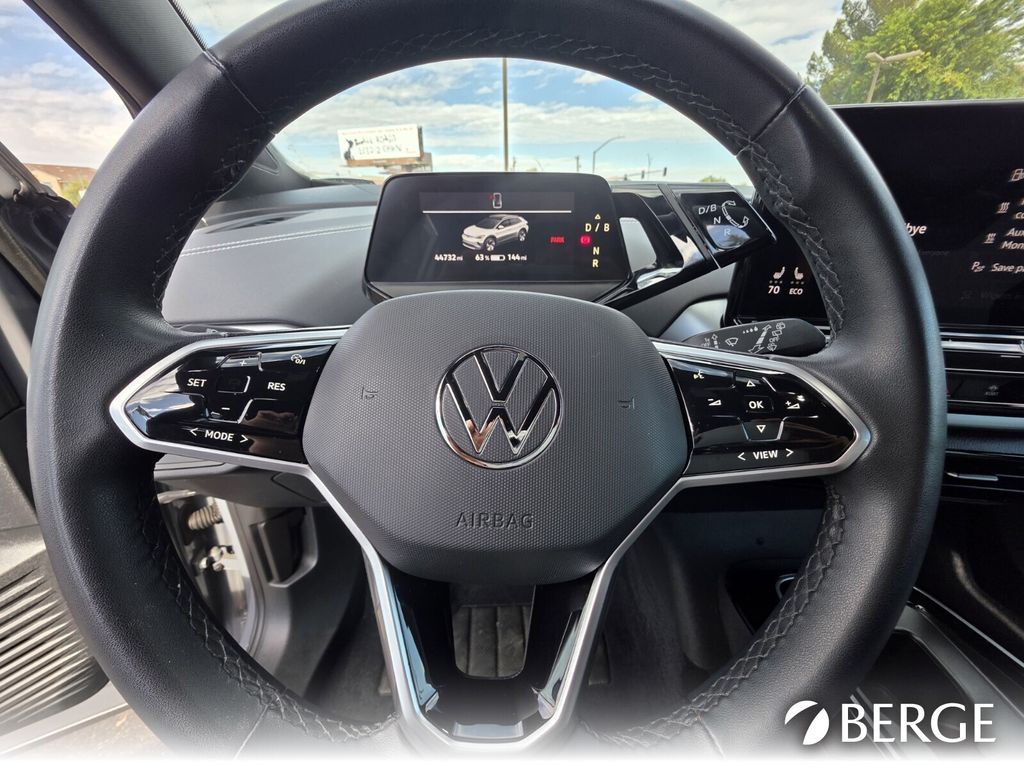 Serving The Valley For Over 40 Years! This Volkswagen ID.4 is equipped with the following features: 4 Wheel Independent Suspension, 4.39 Axle Ratio, 7 Speakers, ABS brakes, Air Conditioning, Alloy wheels, Auto High-beam Headlights, Auto-dimming Rear-View mirror, Automatic temperature control, Brake assist, Bumpers: body-color, Cloth Seating Surfaces, Delay-off headlights, Driver door bin, Driver vanity mirror, Driver's Seat Mounted Armrest, Dual front impact airbags, Dual front side impact airbags, Electronic Stability Control, Emergency communication system: VW Car-Net Safe & Secure 5-year, Exterior Parking Camera Rear, Four wheel independent suspension, Front anti-roll bar, Front Bucket Seats, Front dual zone A/C, Front reading lights, Fully automatic headlights, Heated door mirrors, Heated Front Seats, Heated front seats, Illuminated entry, Low tire pressure warning, Navigation System, Occupant sensing airbag, Outside temperature display, Overhead airbag, Overhead console, Panic alarm, Passenger door bin, Passenger seat mounted armrest, Passenger vanity mirror, Power door mirrors, Power steering, Power windows, Radio data system, Radio: Discover Pro Max w/12" Touchscreen Nav, Rain sensing wipers, Rear anti-roll bar, Rear reading lights, Rear window defroster, Rear window wiper, Remote keyless entry, Speed control, Speed-sensing steering, Split folding rear seat, Spoiler, Steering wheel mounted audio controls, Telescoping steering wheel, Tilt steering wheel, Traction control, Trip computer, Turn signal indicator mirrors, Variably intermittent wipers, and Wheels: 19" 2-Tone Machined Alloy.