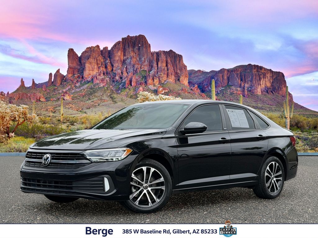 Serving The Valley For Over 40 Years! This Volkswagen Jetta is equipped with the following features: Convenience Package (Auto-Dimming Interior Rear-View Mirror, Leather-Wrapped Steering Wheel & Shifter, and Rain-Sensing Automatic Front Wipers), IQ.DRIVE Package (Active Blind Spot Monitor, Adaptive Cruise Control (ACC) Stop & Go, Emergency Assist, Front Assist w/Autonomous Emergency Braking, Lane Assist (Lane Keeping System), Rear Traffic Alert, and Travel Assist (Semi-Automated Driving Assistance)), Black Cloth, 4 Speakers, 4-Wheel Disc Brakes, ABS brakes, Air Conditioning, Alloy wheels, AM/FM radio, Brake assist, Bumperdillo Rear Bumper Protection Plate in Black, Bumpers: body-color, Cloth Seat Trim, Delay-off headlights, Driver door bin, Driver vanity mirror, Dual front impact airbags, Dual front side impact airbags, Electronic Stability Control, Emergency communication system: VW Car-Net Safe & Secure 5-year, Exterior Parking Camera Rear, First Aid Kit, Front anti-roll bar, Front Bucket Seats, Front Center Armrest, Front Comfort Sport Seats, Front wheel independent suspension, Fully automatic headlights, Heated door mirrors, Heavy Duty Trunk Liner w/VW CarGo Blocks, Illuminated entry, Low tire pressure warning, Occupant sensing airbag, Outside temperature display, Overhead airbag, Overhead console, Panic alarm, Passenger door bin, Passenger vanity mirror, Power door mirrors, Power steering, Power windows, Radio data system, Radio: MIB3 Composition Color w/6.5" Touchscreen, Rear anti-roll bar, Rear reading lights, Rear seat center armrest, Rear window defroster, Remote keyless entry, Roadside Assistance Kit, Rubber Monster Mats Kit (Set of 4), Speed control, Speed-sensing steering, Split folding rear seat, Steering wheel mounted audio controls, Tachometer, Telescoping steering wheel, Tilt steering wheel, Traction control, Trip computer, Trunk Lid Lip Spoiler, Variably intermittent wipers, VW Car-Net Safe & Secure 5-Year Plan, and Wheels: 17" 2-Tone Machined Alloy.