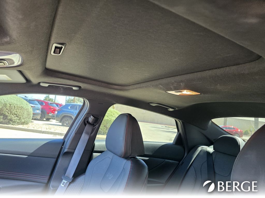 Serving The Valley For Over 40 Years! This Hyundai Elantra is equipped with the following features: Option Group 01, 18" x 7.5J Alloy Wheels, 4-Wheel Disc Brakes, 8 Speakers, ABS brakes, Air Conditioning, Alloy wheels, AM/FM radio: SiriusXM, Apple CarPlay & Android Auto, Auto High-beam Headlights, Automatic temperature control, Brake assist, Bumpers: body-color, Cargo Net, Carpeted Floor Mats, Combination Cloth & Leatherette Seating Surfaces, Delay-off headlights, Driver door bin, Driver vanity mirror, Dual front impact airbags, Dual front side impact airbags, Electronic Stability Control, Emergency communication system: Bluelink+, Exterior Parking Camera Rear, First Aid Kit, Four wheel independent suspension, Front anti-roll bar, Front Bucket Seats, Front Center Armrest, Front dual zone A/C, Front reading lights, Fully automatic headlights, Heated door mirrors, Heated front seats, Heated Front Sport Bucket Seats, Illuminated entry, Leather Shift Knob, Leather steering wheel, Low tire pressure warning, Navigation System, Occupant sensing airbag, Outside temperature display, Overhead airbag, Overhead console, Panic alarm, Passenger door bin, Passenger vanity mirror, Power door mirrors, Power driver seat, Power moonroof, Power steering, Power windows, Radio: AM/FM/HD/SiriusXM Display Audio, Rear anti-roll bar, Rear seat center armrest, Rear side impact airbag, Rear window defroster, Remote keyless entry, Reversible Cargo Tray, Security system, Speed control, Speed-sensing steering, Split folding rear seat, Spoiler, Sport steering wheel, Steering wheel mounted audio controls, Tachometer, Telescoping steering wheel, Tilt steering wheel, Traction control, Trip computer, Turn signal indicator mirrors, and Variably intermittent wipers.