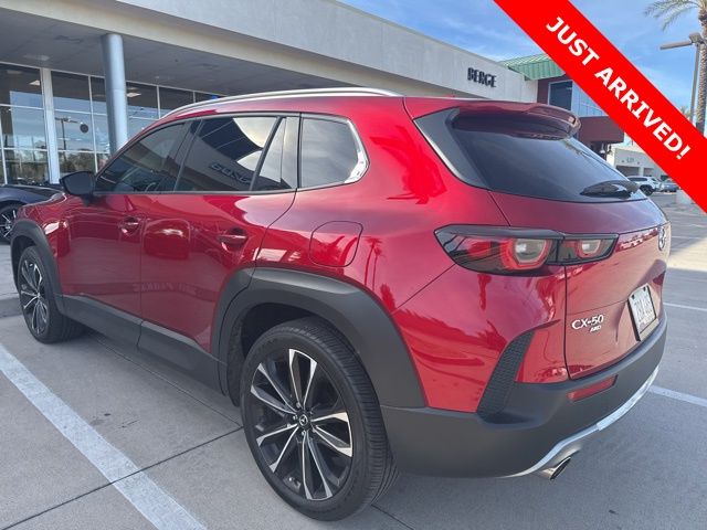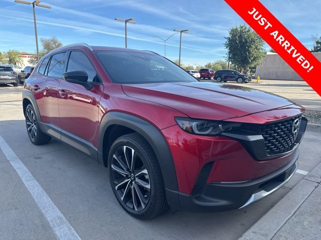 Serving The Valley For Over 40 Years! This Mazda CX-50 is equipped with the following features: Cargo Package (Cargo Blocks), 12 Speakers, 20" x 8J Aluminum Alloy Wheels, 4-Wheel Disc Brakes, ABS brakes, Air Conditioning, Alloy wheels, AM/FM radio: SiriusXM, AppLink/Apple CarPlay and Android Auto, Auto High-beam Headlights, Auto-dimming Rear-View mirror, Automatic temperature control, Brake assist, Bumpers: body-color, Delay-off headlights, Driver door bin, Driver vanity mirror, Dual front impact airbags, Dual front side impact airbags, Electronic Stability Control, Emergency communication system: MAZDA CONNECT, Exterior Parking Camera Rear, Front anti-roll bar, Front Bucket Seats, Front Center Armrest, Front dual zone A/C, Front reading lights, Front wheel independent suspension, Fully automatic headlights, Garage door transmitter: HomeLink, Heads-Up Display, Heated & Ventilated Front Bucket Seats, Heated door mirrors, Heated front seats, Heated steering wheel, Illuminated entry, Knee airbag, Leather Seat Trim, Leather Shift Knob, Leather steering wheel, Low tire pressure warning, Memory seat, Occupant sensing airbag, Outside temperature display, Overhead airbag, Overhead console, Panic alarm, Passenger door bin, Passenger vanity mirror, Power door mirrors, Power driver seat, Power Liftgate, Power moonroof, Power passenger seat, Power steering, Power windows, Radio data system, Radio: AM/FM/HD Audio System, Rain sensing wipers, Rear seat center armrest, Rear window defroster, Rear window wiper, Remote keyless entry, Retractable Cargo Cover, Soul Red Crystal Metallic Paint Charge, Speed control, Speed-sensing steering, Split folding rear seat, Spoiler, Steering wheel mounted audio controls, Tachometer, Telescoping steering wheel, Tilt steering wheel, Traction control, Trip computer, Turn signal indicator mirrors, Variably intermittent wipers, and Ventilated front seats.
