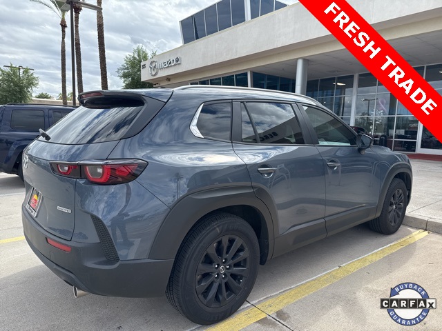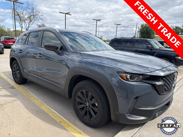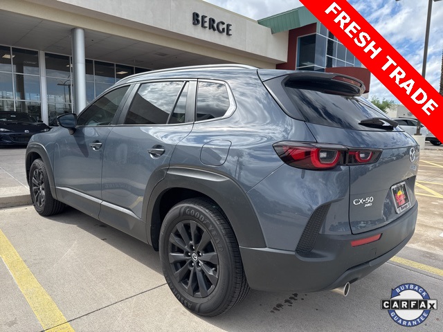 Serving The Valley For Over 40 Years! This Mazda CX-50 is equipped with the following features: Cargo Package (Cargo Blocks), 4-Wheel Disc Brakes, 8 Speakers, ABS brakes, Air Conditioning, Alloy wheels, AM/FM radio, AppLink/Apple CarPlay and Android Auto, Auto High-beam Headlights, Automatic temperature control, Brake assist, Bumpers: body-color, Carpet Cargo Mat, Delay-off headlights, Driver door bin, Driver vanity mirror, Dual front impact airbags, Dual front side impact airbags, E911 Automatic Emergency Notification, Electronic Stability Control, Emergency communication system: MAZDA CONNECT, Exterior Parking Camera Rear, Front anti-roll bar, Front Bucket Seats, Front Center Armrest, Front dual zone A/C, Front reading lights, Front wheel independent suspension, Fully automatic headlights, Half Leatherette Seat Trim, Heated door mirrors, Heated Front Bucket Seats, Heated front seats, Illuminated entry, Infotainment System Voice Command, Knee airbag, Leather Shift Knob, Leather steering wheel, Low tire pressure warning, Multifunction Commander Control, Occupant sensing airbag, Outside temperature display, Overhead airbag, Overhead console, Panic alarm, Passenger door bin, Passenger vanity mirror, Polymetal Gray Metallic Paint Charge, Power door mirrors, Power driver seat, Power Liftgate, Power steering, Power windows, Radio Broadcast Data System Program Information, Radio data system, Radio: AM/FM/HD Audio System, Rain sensing wipers, Rear seat center armrest, Rear window defroster, Rear window wiper, Remote keyless entry, SMS Text Msg Audio Delivery & Reply, Speed control, Speed-sensing steering, Split folding rear seat, Spoiler, Steering wheel mounted audio controls, Tachometer, Telescoping steering wheel, Tilt steering wheel, Traction control, Trip computer, Turn signal indicator mirrors, Variably intermittent wipers, and Wheels: 17" x 7J Aluminum Alloy.